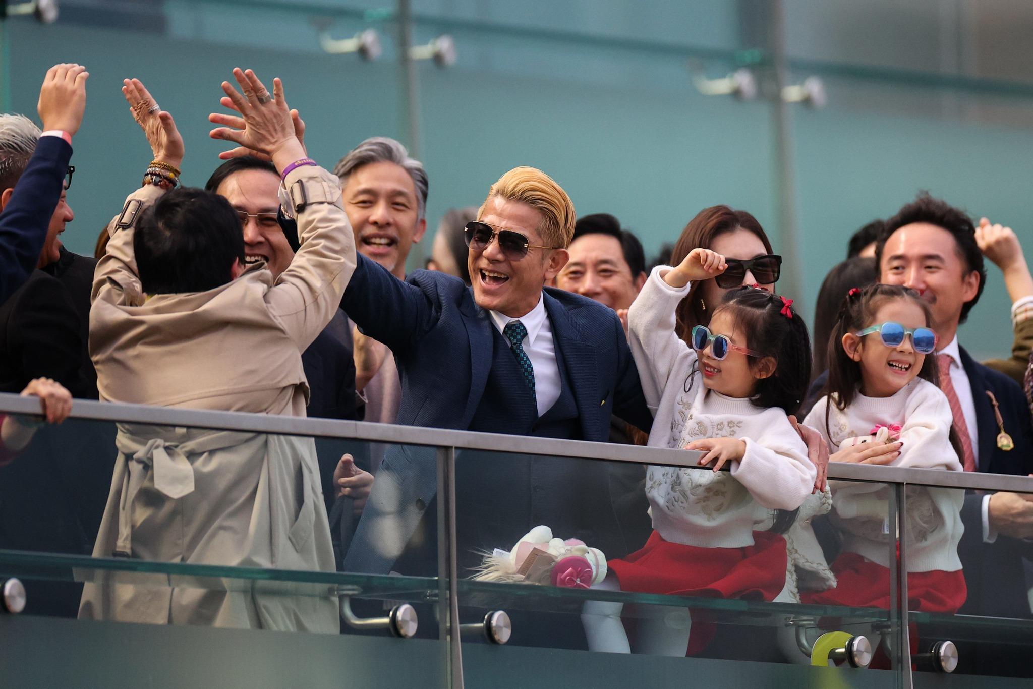 郭富城早前在台北舉行一連三場《ICONIC世界巡迴演唱會》,首場發生墮台意外,幸好未有受傷。昨日(1日)是元旦賽馬日,城城貴為馬主,他名下的「舞林密碼」出戰第10場的賽事並勝出,城城一家四口拉頭馬,非常開心而且新一年贏到好意頭。