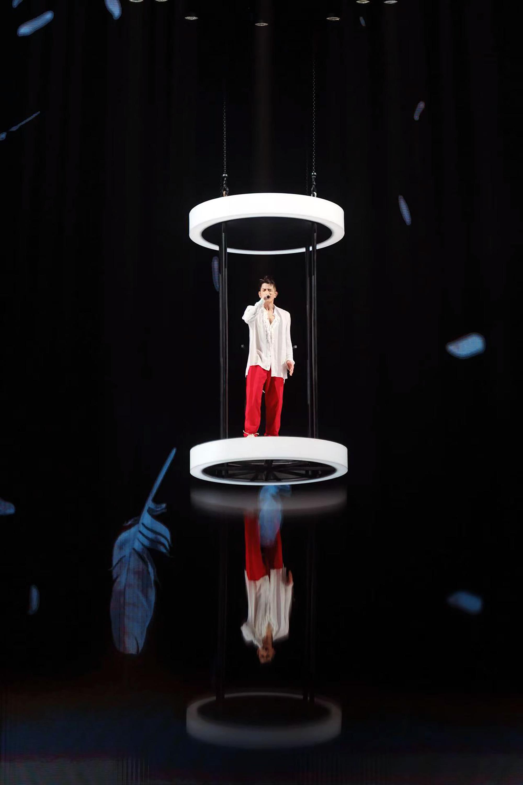 城城今次演唱會繼續延續台上作畫的概念,他邊唱邊跳《分享愛》,邊潑顏料作畫