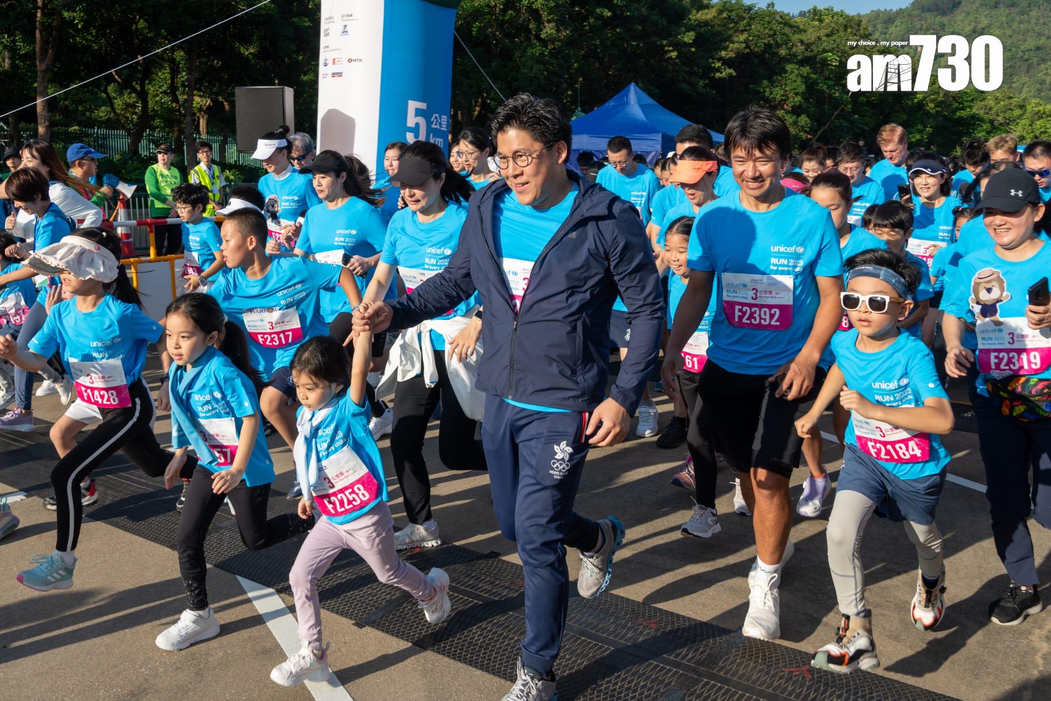 霍啟剛一家5口與黃金寶一家領跑3公里賽事。