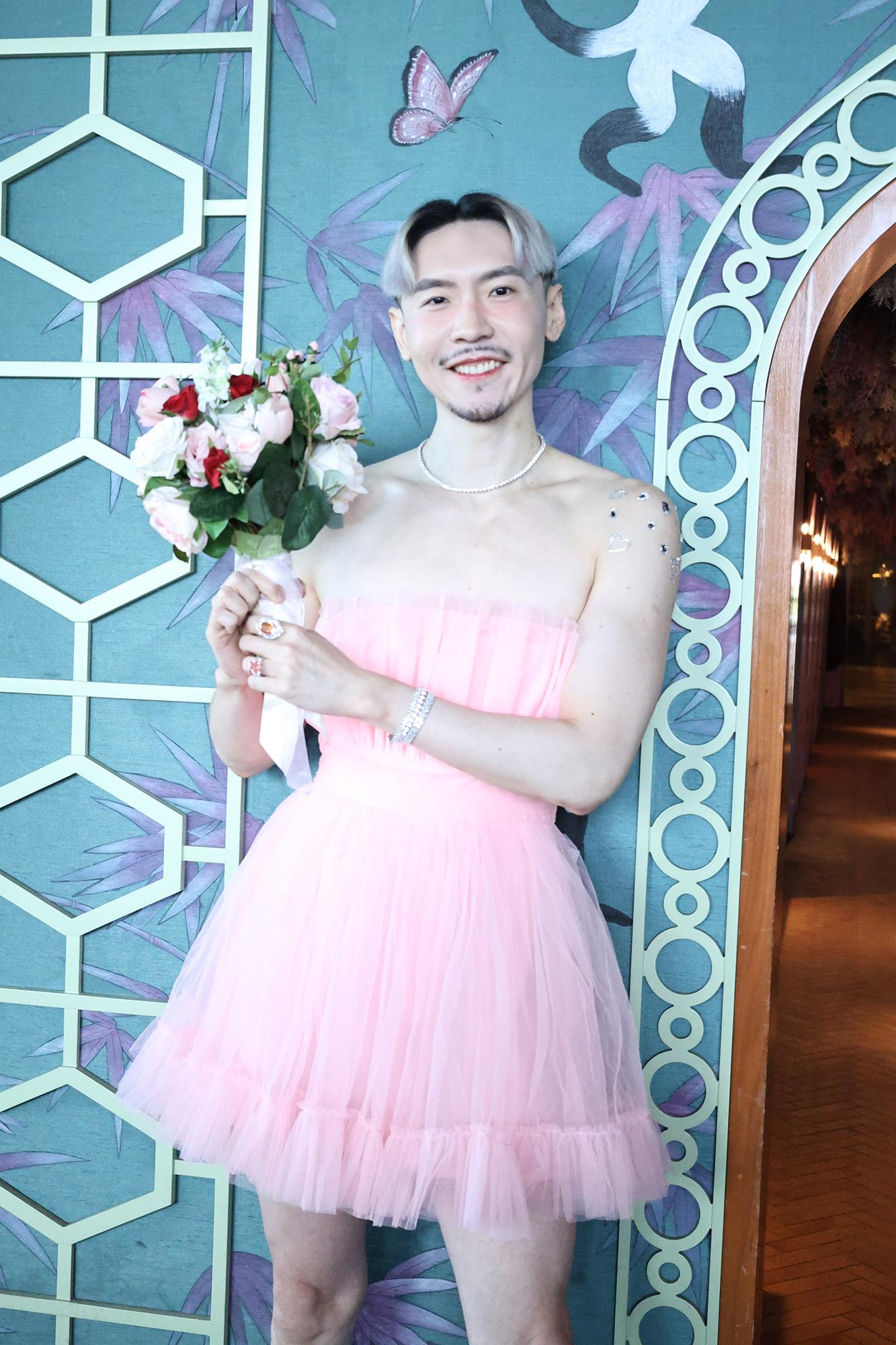 穿上一襲粉色露肩短裙的Joey Ma表示將會代表攣男。