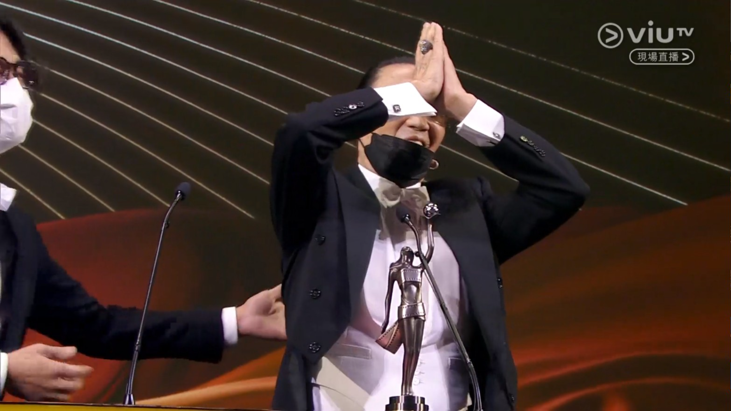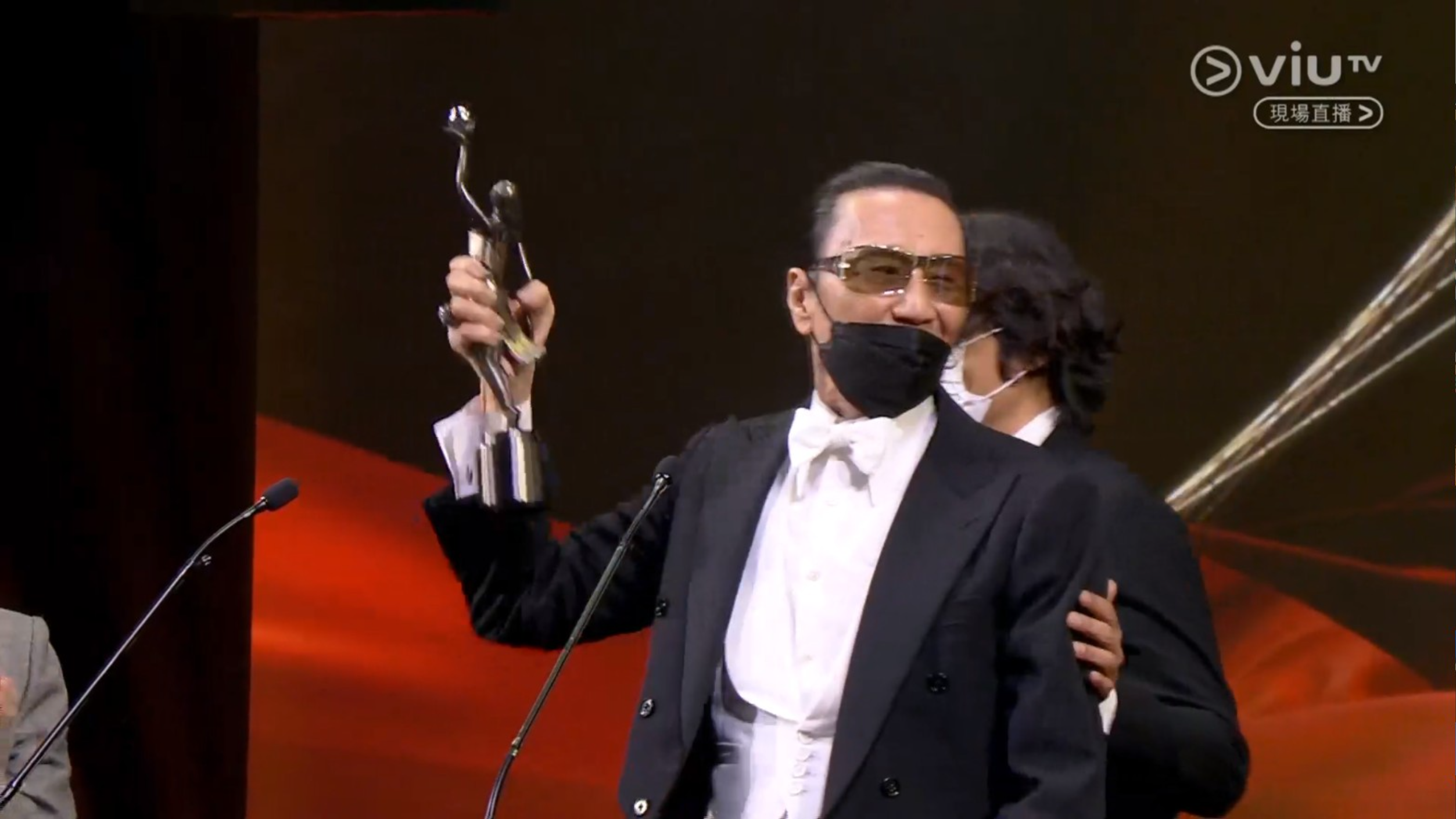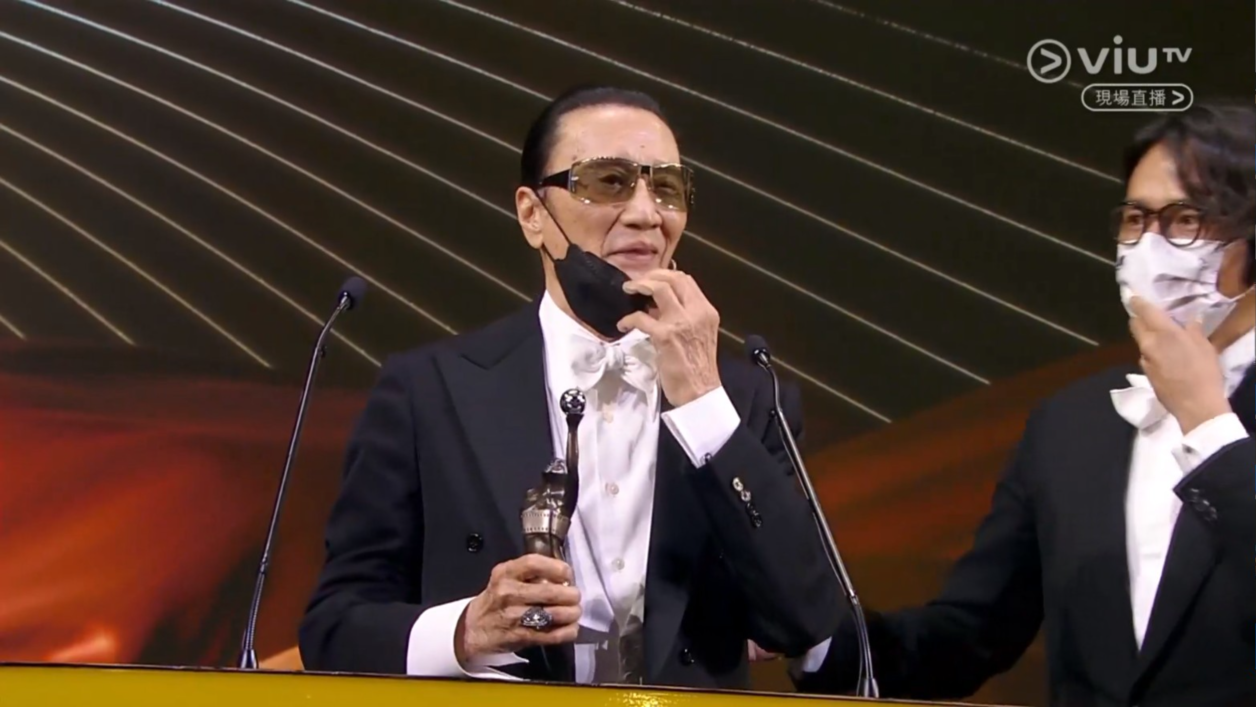 其後家輝宣布,由《殺出個黃昏》的謝賢奪得影帝,四哥在林家棟陪同下上台,四哥的步履不太穩,當他接過獎項之後,便拉下口罩跟大家說多謝。台下所有人都起立拍手致意。惟四哥拉下口罩後,發現有歪咀情況,其後家棟隨即幫他拉上口罩,家棟問到他有沒有其他感想要發表,他說︰「我冇呀!我淨係識拎呢個獎咋!」家棟在台上表示,醫生叮囑因人多關係,四哥要戴上口罩。之後他陪四哥落台,四哥也沒有接受訪問便離開會場。