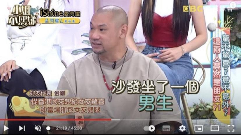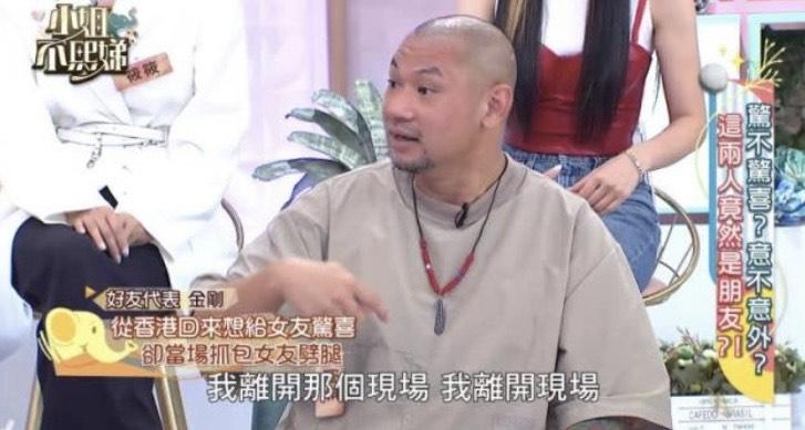 金剛指他當時仍在香港工作,但為了想給女友驚喜就悄悄回台灣,結果金剛一到家門口就發覺不對勁,家中的燈亮了,而當他一進門竟見一名猛男坐在沙發上,二人對望了一眼,金剛便問:「她呢?」而女友則穿著背心與小熱褲,坐在房中睇雜誌。