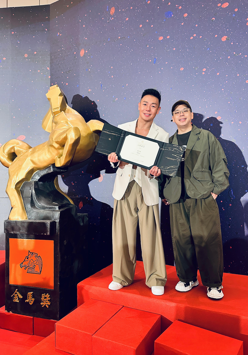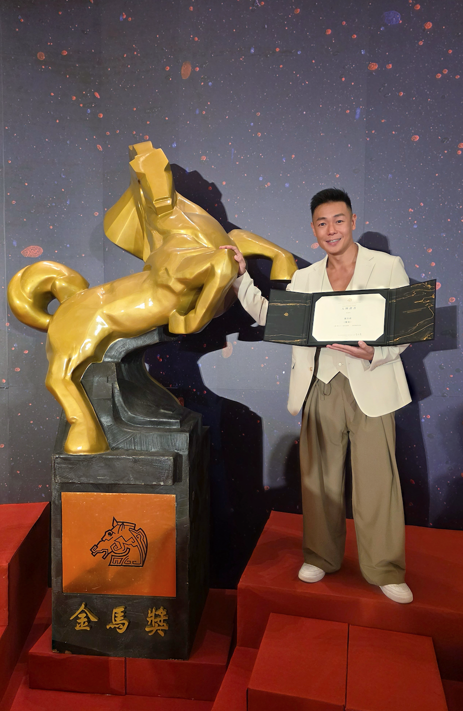 在短短幾天的金馬獎旅程中,除了遇見很多朋友外,還能與所有入圍者拍攝大合照,感到既夢幻又興奮。他說:「好耐無拎過證書,大學畢業咁多年後,呢嗰喺我第二本證書,我會繼續努力,籌備下一套動作電影。」