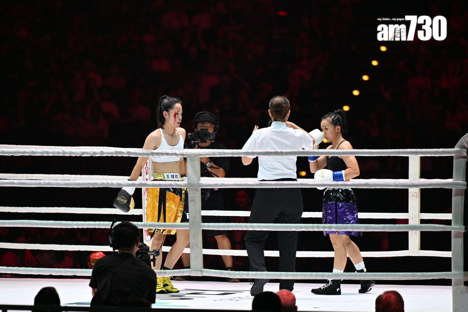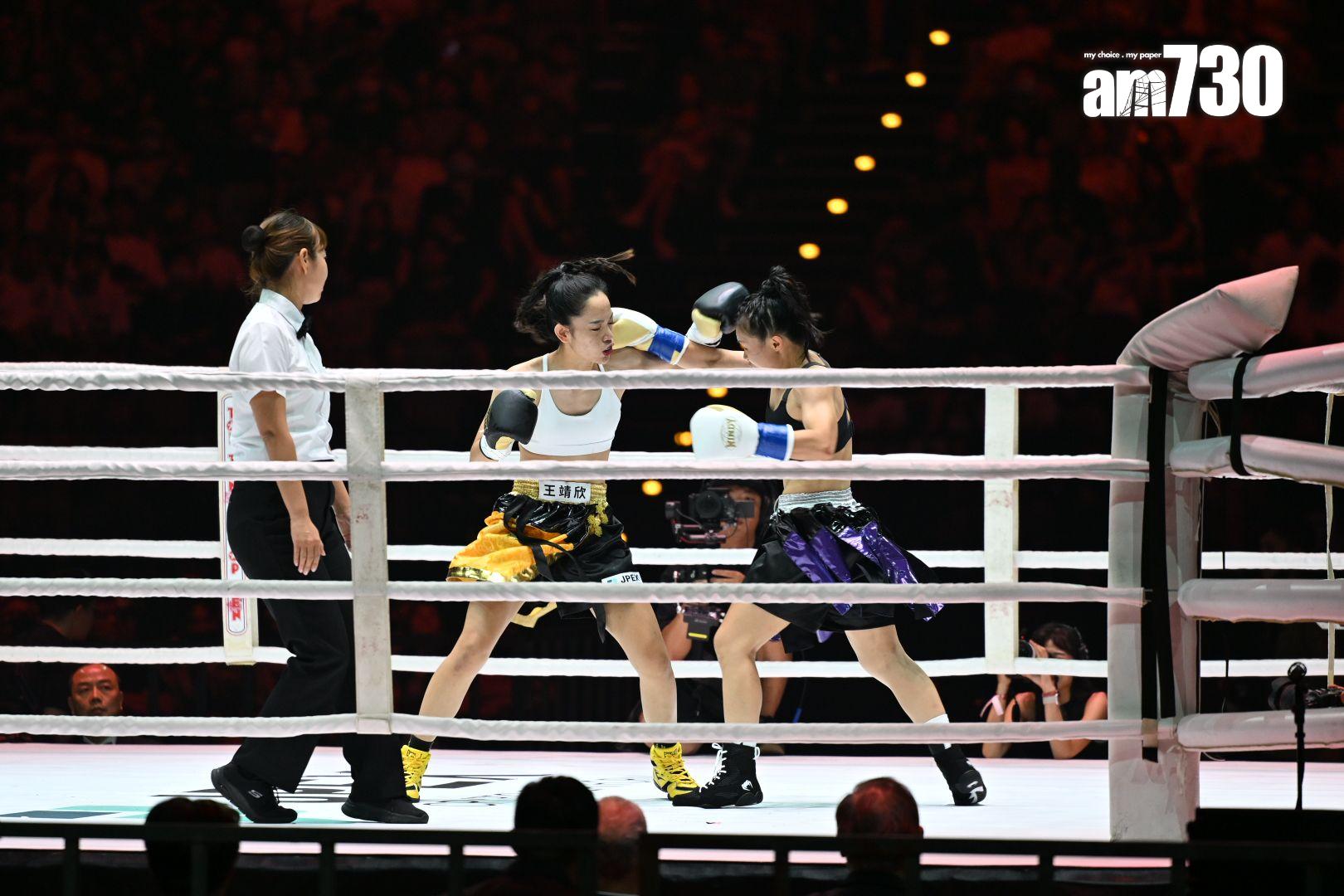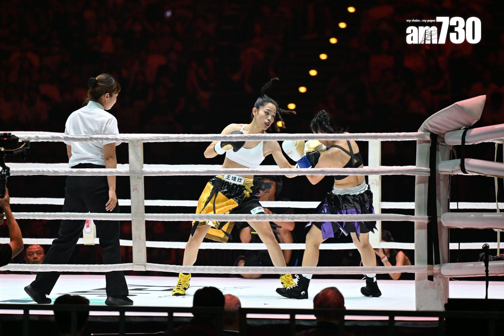 去到第二輪比賽,由職業女拳手王靖欣對戰林品足上陣,這場賽事相當精彩。王靖欣在首回合被林品足打中眉角,令她立即血流如注,現場裁判隨即暫停賽事,並叫在場醫護上擂台為她檢查。王靖欣止血之後再與林品足對打,但在林品足重擊之後,令她的傷勢加劇,搞到成面血,就連拳套及衣服都染成紅色。王靖欣去到第三回合更因體力不繼,多次抱住林品足,最後她以2-1擊敗對方,全場給予掌聲。王靖欣贏得比賽之後,激動落淚,表示自己打拳已快三年,希望可以為台灣爭一分力量。