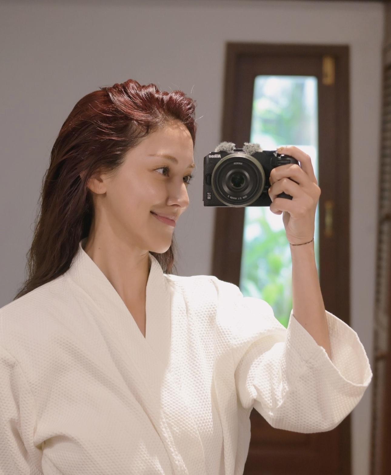 Grace穿上浴袍自信大晒素顏照,皮膚狀態極佳。