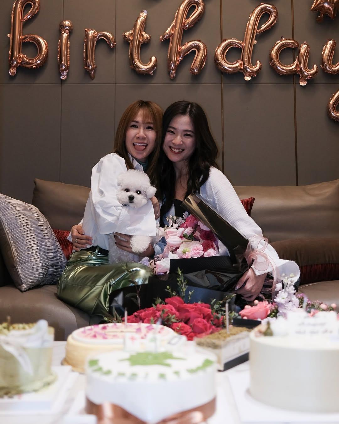 不過,羅天宇就被生意拍檔「出賣」,與他夾份搞小食生意的李興華在IG貼出合照,令羅天宇意外曝光。相中見到羅天宇跟陳懿德中間有李興華,壽星女就跟張景淳頭貼頭影相。另外,德德在IG分享了捧住靚靚蛋糕在無敵靚景下影相,用英語留言說︰「多謝你在我生日為我作出這個完美安排,真是一個慶祝的好地方」,之後又寫上:「海景、美食、igable蛋糕=100分」