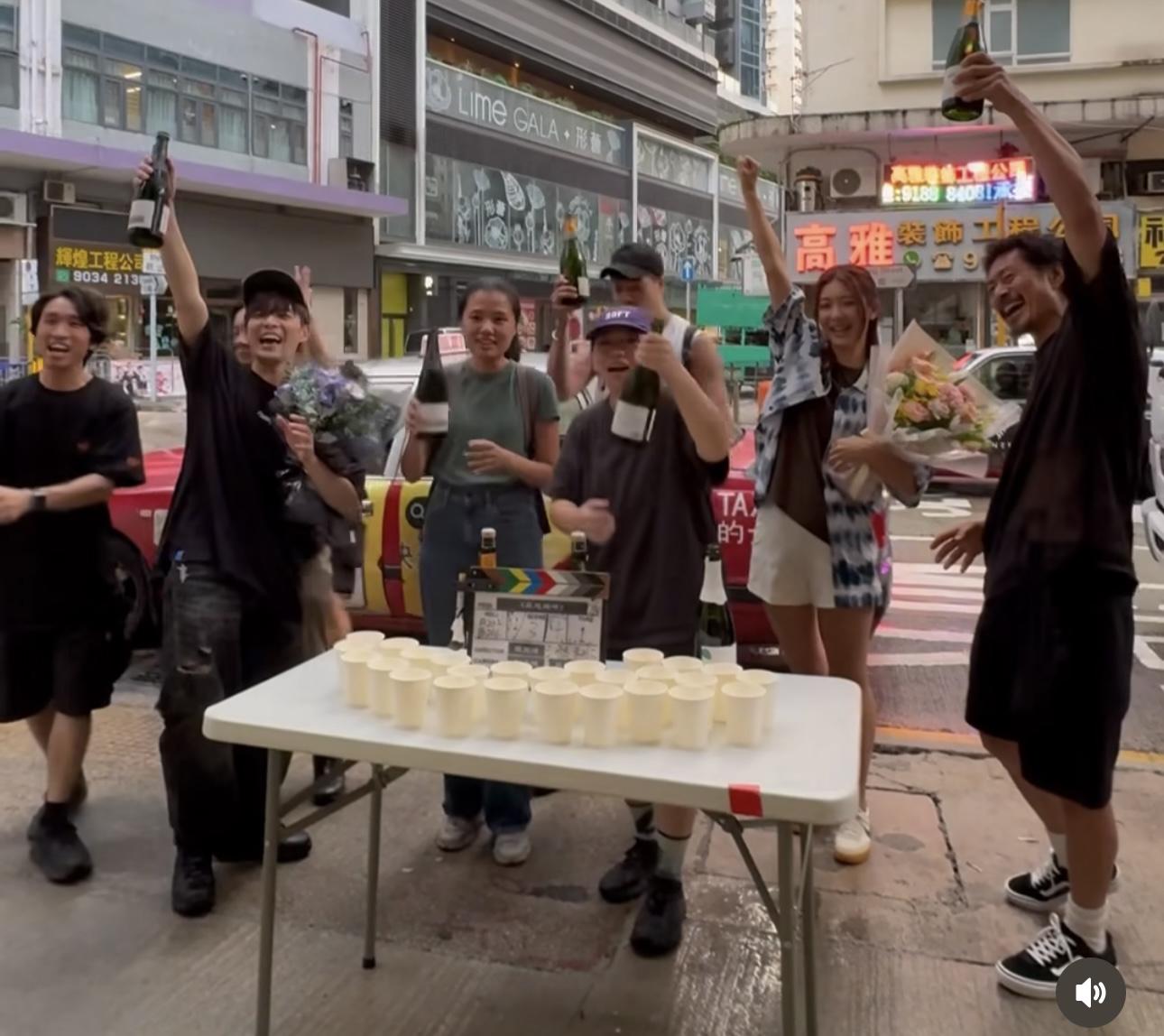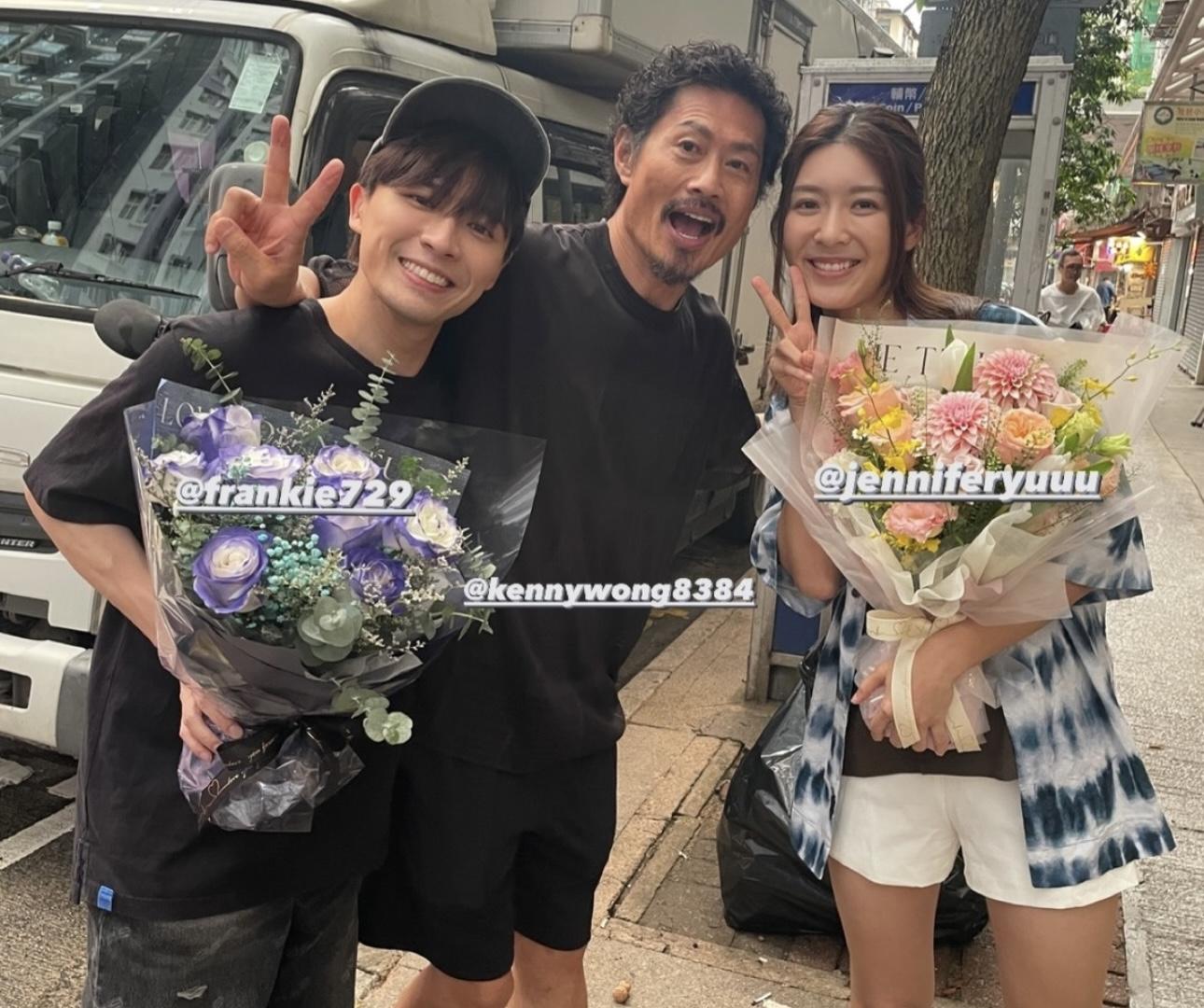 繼早前在劇中飾演Frankie兒子的童星王瑋程(Desmond)率先曝光Frankie 徹底崩壞的近照後,昨日(18日)其經理人Yu在社交平台分享了《麻甩媽咪》的煞科照,Frankie亦有轉發,這亦他為緋聞發出聲明後首度再於IG發文。相中見Frankie笑容滿面,精神不俗,對比早前「圓碌碌」走晒樣的照片,身形和面形明顯消減了不少,回復昔日狀態;余香凝亦有在社交平台分享煞科的花絮短片,片中亦見Frankie與台前幕後工作人員興奮開香檳,心情大靚,似乎已經走出陷出軌風波的陰霾。今午(19日),Frankie 在於IG限時動態貼出與黃德斌及余香凝的合照,相中見他拿着一紮鮮花,並開心表示:「多謝劇組照顧」。