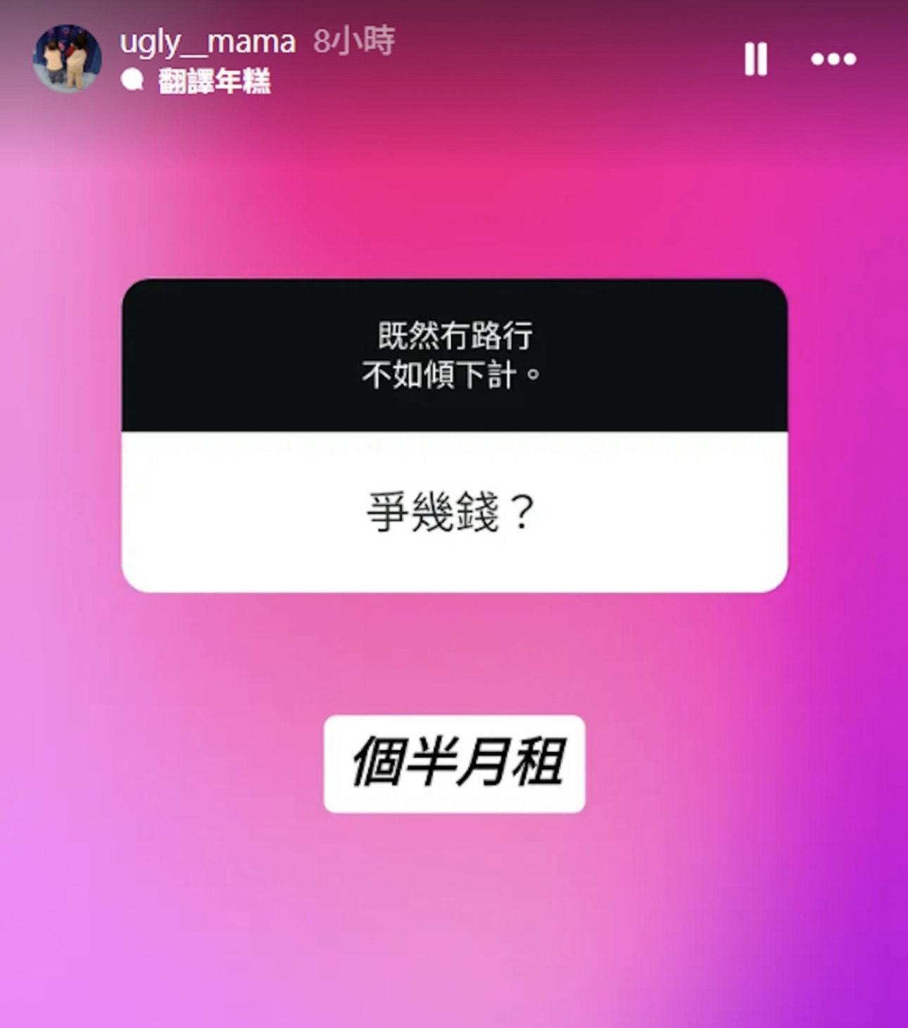 昨日(11日)雯雯透露欠租一個半月,業主已限定他們一家要在「9日」後搬出,若以今日(12日)起計即只剩8日,不過一家仍然未找到下個住處,9日後可能要「7街瞓」!雯雯連環發文回覆網民表示:「冇屋住亦租唔起」、「其實冇地方可以去,冇得交今個月租,又點會租到新屋」、「準備冇地方住」,就連執屋的紙皮箱她都要向網民求助:「有冇人有紙皮箱或紅白藍袋可以幫下?」