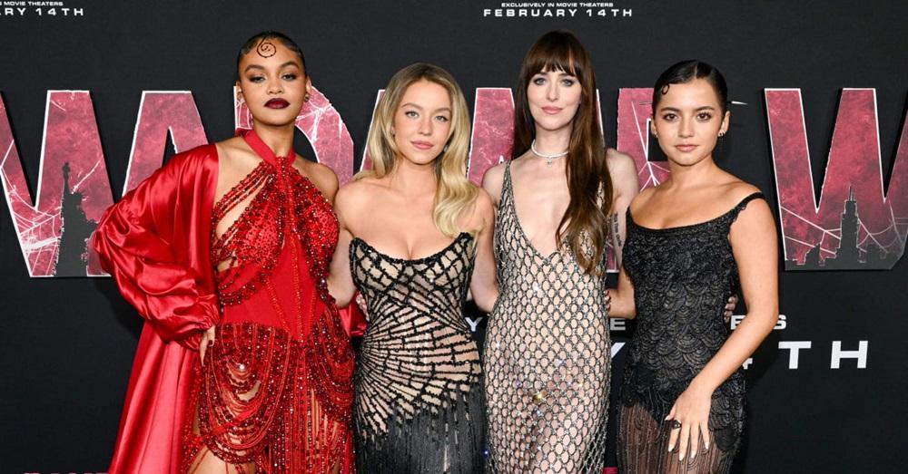 Sony Pictures與Marvel合作的超英片《蜘蛛夫人》(Madame Web)即將上映,電影早前未有大型宣傳活動,直至最近才陸續舉行首映。今日,狄高達莊遜(Dakota Johnson)、Sydney Sweeney、Celeste O’Connor、Emma Roberts及Isabela Merced出席洛杉磯舉行的首映禮,5位美人在片中飾演不同蜘蛛女,首映禮上穿得性感美艷,風頭蓋過電影本身,成為傳媒焦點。