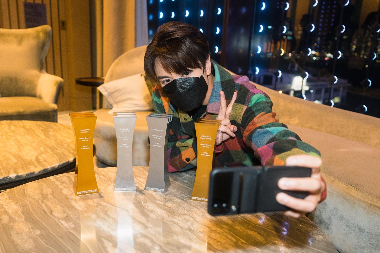 首次執導的軒仔,即以導演身份獲獎,他坦言感覺特別,「好開心,亦都好特別個感覺,因為入咗行二十年,第一次拎一個同唱歌冇關嘅獎項,正如好似今年年頭我曾經講過,今年會以一個新人嘅身份,乜嘢都會去嘗試。自己亦都好榮幸,有客戶嘅support、投資,同埋有信心搵我做導演去拍一個廣告嘅微電影,我先至有機會去參與呢件事。」整個拍攝過程中,軒仔表示最困難是經驗不足,所以他特別感謝團隊,「多謝監製、編劇陳詠燊。成件事上面,Sunny都諗咗幾個劇本出嚟,最後大家商議揀選咗呢個劇本。有話題性之餘,亦都符合市場需要。」