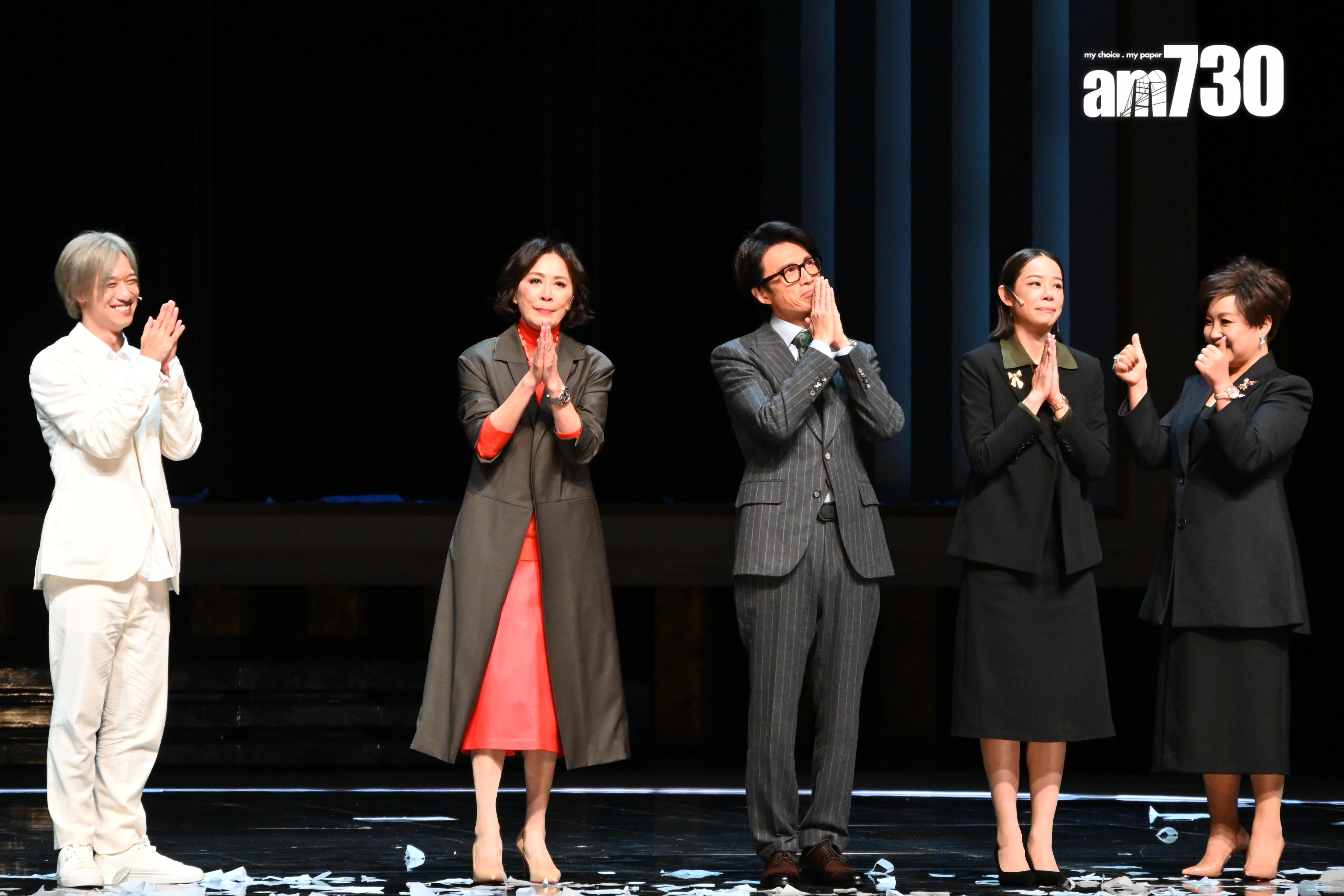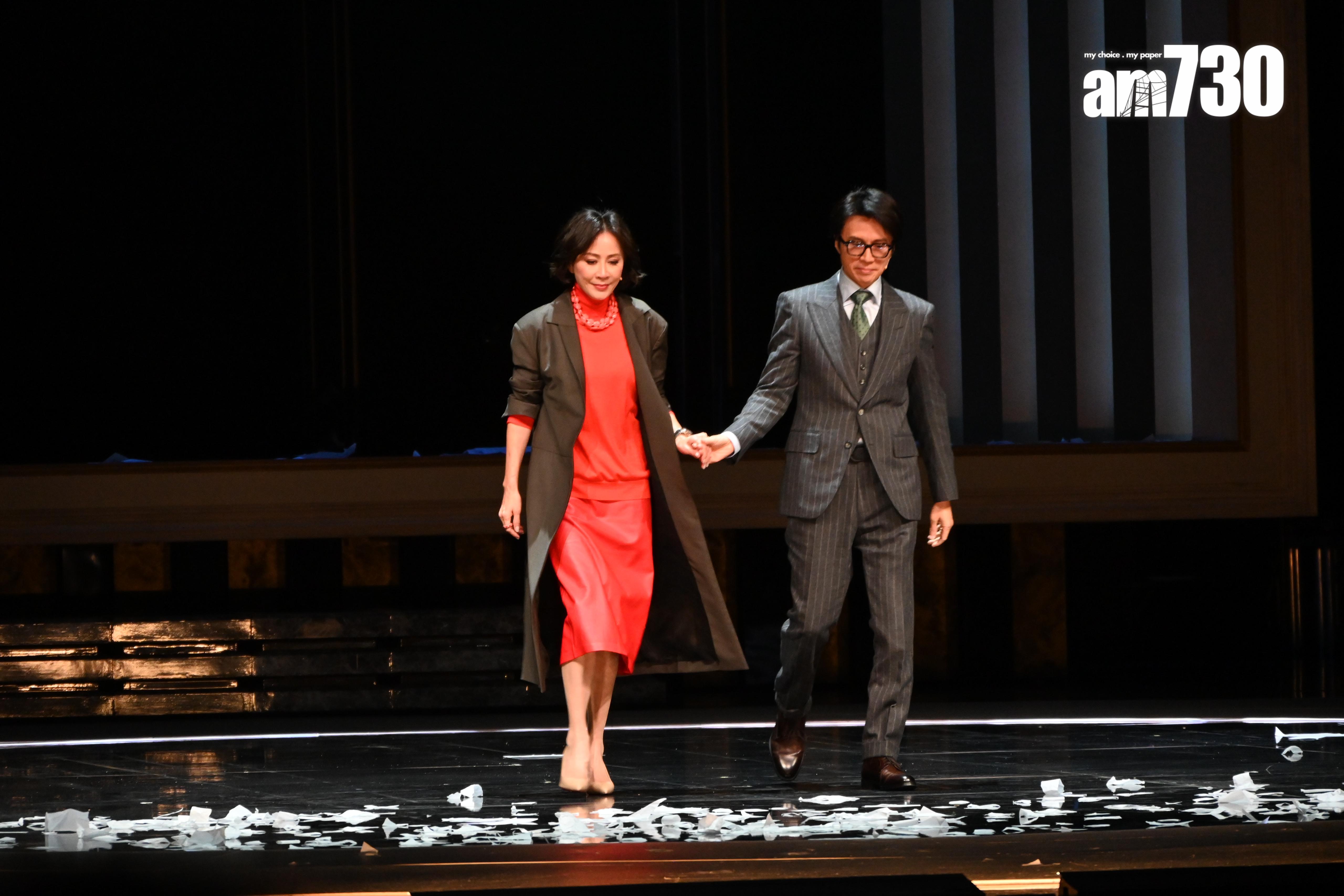 由黃子華、劉嘉玲首度合作的《香港式離婚》昨日公演,多位藝人到場支持,包括狄波拉、修哥胡楓、陳志雲、金燕玲、蘇施黃、張智霖、袁詠儀、蔡一智、古巨基、張繼聰、謝安琪、伍富橋夫婦等,霍啟剛與郭晶晶在完場時更走到拍照攤位影相。