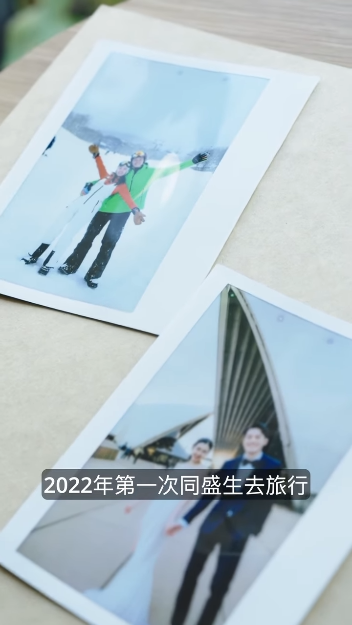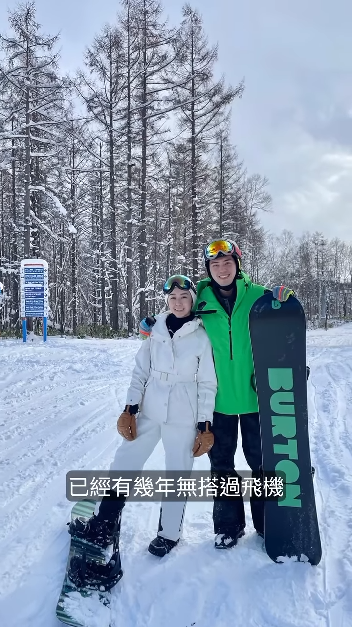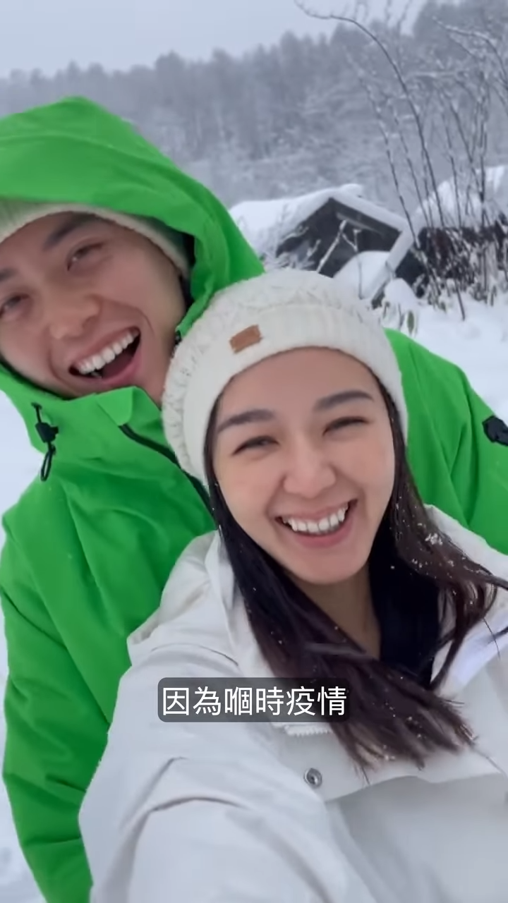影片見到她公開跟盛勁為滑雪的影片及照片,另外還有他們拍pre wedding的花絮。盛勁為在帖文更留言笑問:「去台北嗰班機係咪我飛去?」