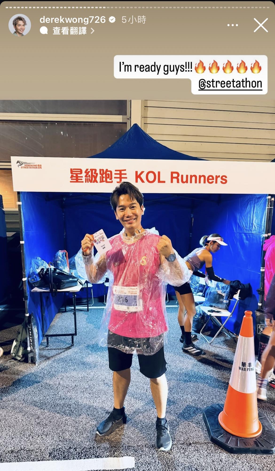 過去有報名參加馬拉松的他今日(23日)有參加香港街馬21K賽事,他表示過去會有控制食量,今次親主要集中練跑、練體力,「如果太忍口,我唔夠力跑,今次我就練多咗步,拉筋拉多咗,前幾日有跑19公里。」他坦言因為之前跑渣馬時有足底筋膜炎,令他跑得很辛苦,所以現在會比較多拉筋,做足熱身才去跑步。