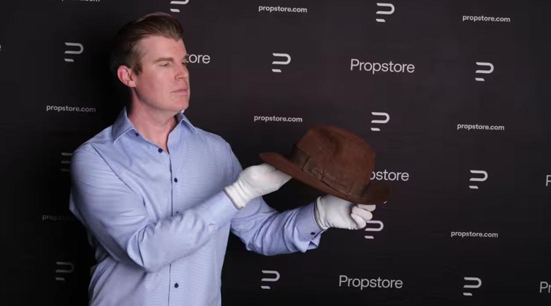 這頂64萬美元的帽子,是1984年《奪寶奇兵》系列第2集《魔域奇兵》(Indiana Jones and the Temple of Doom)所用,收藏家是已故特技演員Dean Ferrandini的私人收藏,他當年是夏里遜福的動作替身,當時也曾戴上此帽。其他電影道具拍賣還有《星球大戰:武士復仇》(Star Wars Episode VI:Return of the Jedi)的偵察兵頭盔,成交價31.5萬美元。1996年電影《奪命狂呼》(Scream)演員所穿的幽靈服飾,成交價28萬美元。