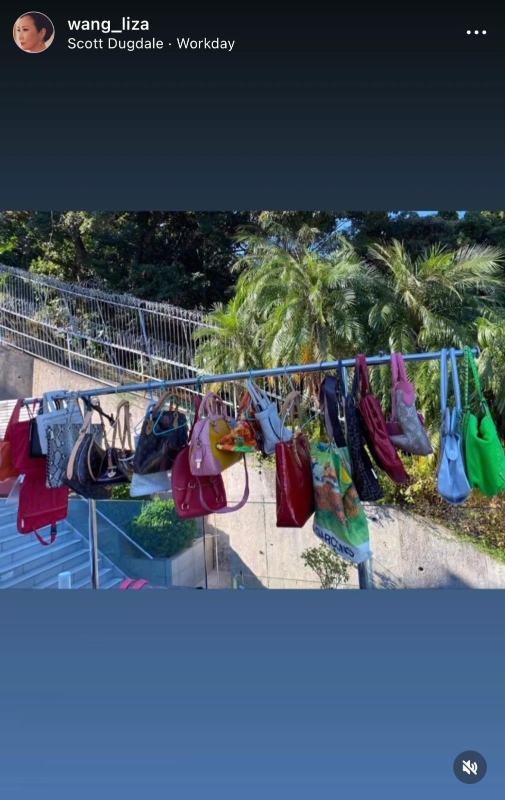 走喺潮流尖端嘅阿姐,對唔同穿搭都有一番研究,好少失手嘅佢仲被封為「時尚教母」。最近佢上載一段喺西貢獨立屋「曬包包」嘅片段,阿姐將啲包包放滿幾張枱,有啲仲掛喺晾衫竹嚟曬,唔少人對佢嘅「曬鹹魚」式嘅保養包包方法感到有興趣,除咗容祖兒留言話「Cutie 阿姐」之外,唔少網民亦有留言,例如「人哋曬命,啊姐曬袋」、「Lisa姐啲袋要吸收維他命D!」、「亞姐又曬名牌袋」、「Liza姐一年一度的曬包季開始啦」、「So cute」、「生活的樂趣自己創造」及「風和日麗曬曬衣衫又同狗狗玩玩, 好有生活中的樂趣」等等。