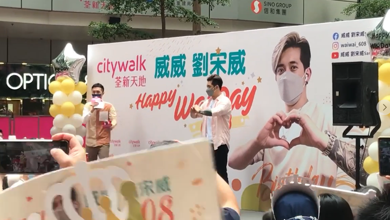 「荃灣豬肉檔AK」劉宋威(威威)今日在荃灣舉行生日粉絲見面會,一眾「威威豬」在大會活動開始前半小時已經入場準備,並帶同海報及名牌等,甚至有「威威豬」戴上生日帽。當威威抵達會場時,現場粉絲不停大叫「威威」,而威威亦親切向在場粉絲打招呼。