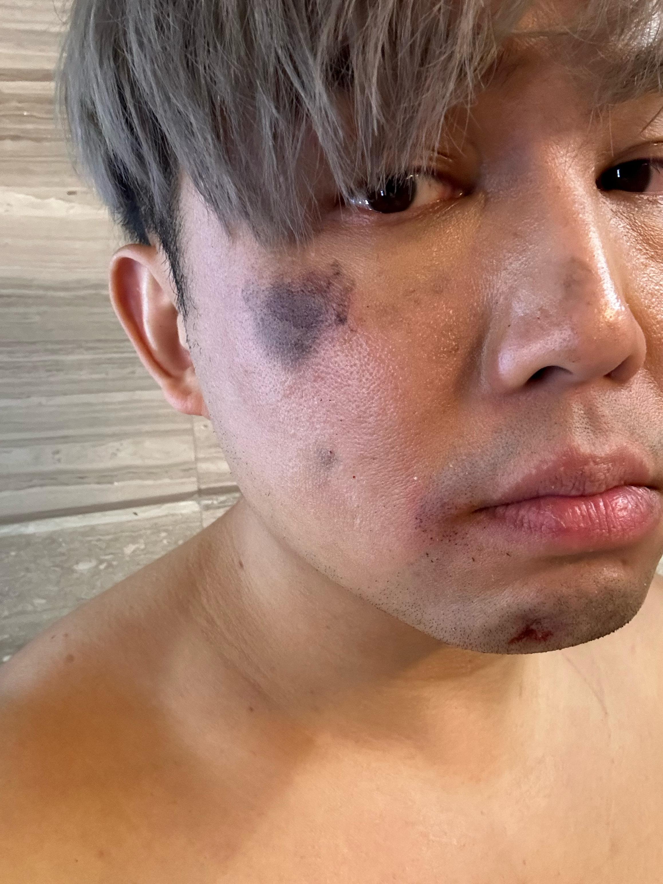 他更展示當日拍攝撞車場口的傷勢,完成是無忽好肉,「好幸運博Sir搵咗成家班幫手拉威哋,先至完成到呢個好震撼嘅場口。」拍攝當日,旨呈被多條威哋吊起,並需在私家車駛過來時,整個人需要在車上翻幾翻。最後經過數十次的「撞車」,旨呈才成功收工,他說︰「其實成個過程,我真係被撞到飛起,我媽知道之後,鬧到我飛起,佢狂鬧『我生咗個仔咁多年,你都未報答我、孝順父母呀!你就撞到咁!』我知佢係心痛嘅,想喺呢度多謝媽咪!」他希望影片可以勝出今次比賽,之後再下一城拍一部完整的電影。