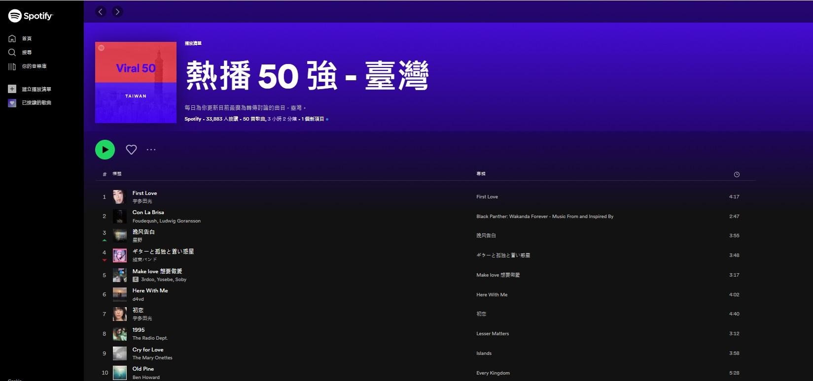 《First Love》贏得台灣Spotify熱播50強冠軍寶座。