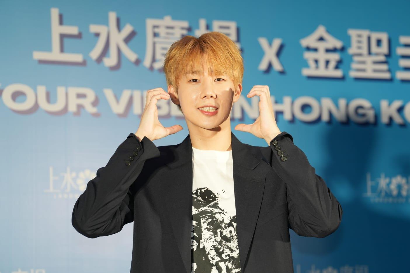 韓國男團 INFINITE金聖圭將於明天(20日)在九展舉行演唱會,今日他先到上水廣場出席記者會,跟粉絲見面,他以廣東話介紹自己並跟在場fans說︰「掛住你哋!」令全場high爆。大會安排數名fans上台跟金聖圭玩遊戲,他不但捉實fans的手,又情深望住她們唱歌。他表示昨日來到香港之後,品嚐了點心,又到尖沙咀坐天星小輪遊維港,一邊飲啤酒一邊看香港夜景。