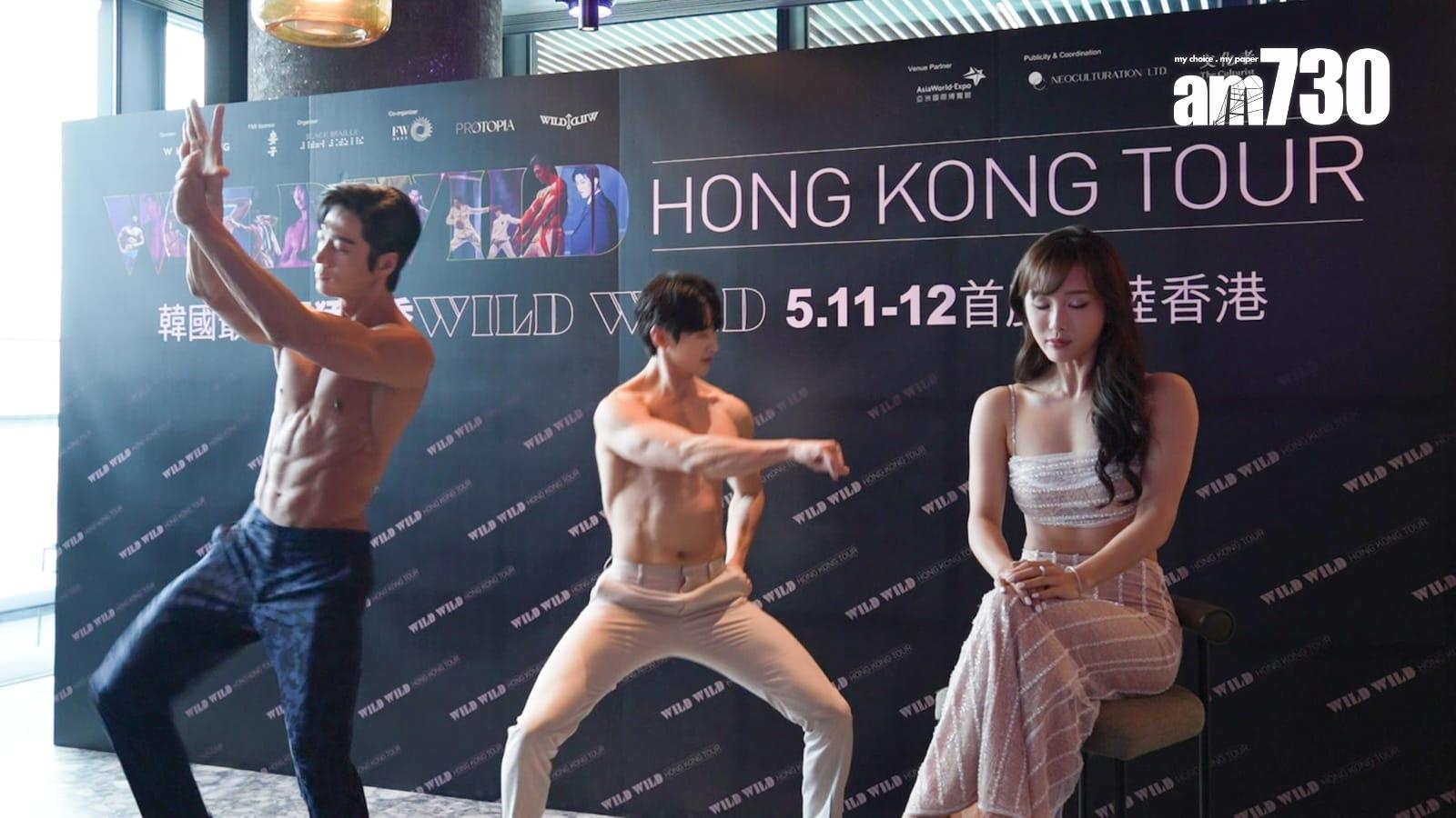 韓國人氣極高的猛男音樂劇《WILD WILD SHOW》將於5月11日和12日在香港亞博開騷,其中有三場是女士專場,另一場則開放予男女觀眾入場欣賞,票價仍有待大會公布。 Wild Wild三位主力包括Netflix戀愛真人秀《Pink Lie》出演者「太陽」姜天一、李國榮及鄭漢三今日(14日)聯同DaDa陳靜一齊出席記者會,三子更乘搭開篷巴士遊覽香港、同粉絲打招呼。三子在記者會上大跳脫衣舞,並與DaDa來個近距離接觸,令她全程不敢直視,更怕羞到掩口笑。