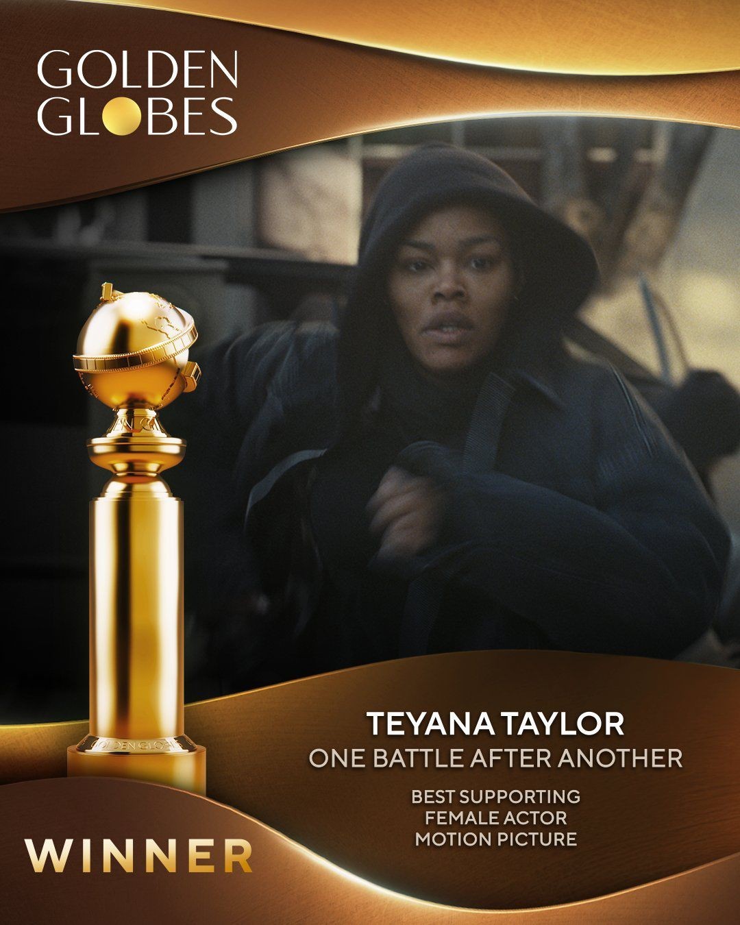 第83屆金球獎頒獎禮於香港時間今日(1月11日)早上舉行,由喜劇女演員Nikki Glaser連續第二年擔任主持。電影組以奧斯卡影帝里安納度狄卡比奧(Leonardo DiCaprio)主演、名導保羅湯馬士安德遜(Paul Thomas Anderson)執導大作《一戰再戰》(One Battle After Another)以9項提名成為焦點,黑人女星堤亞娜泰勒(Teyana Taylor)先拔頭籌,勇奪最佳女配角,是她入行以來首個金球獎殊榮。