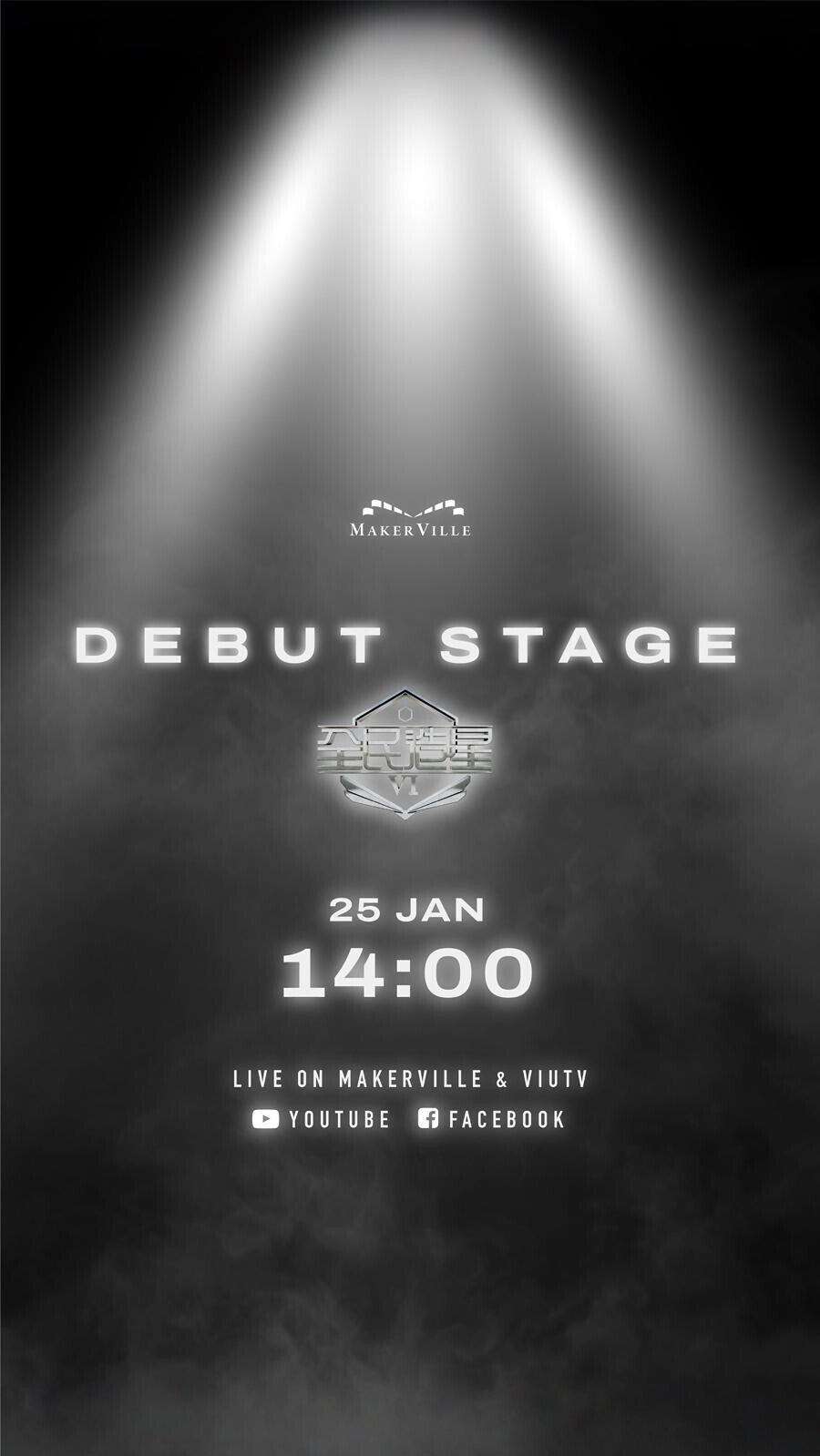 今日官方終傳來消息,《造星VI》男團宣布在即將的星期日(25日)下午2時在時代廣場Times Square隆重登場,屆時才公布男團成員之終極名單,當日更會現場首唱新歌。MakerVille今日於社交媒體釋出一張預告圖,圖中央以一束聚光燈照亮「Debut stage」字樣與節目標誌,揭曉下一隊觸目新星正式出道。
