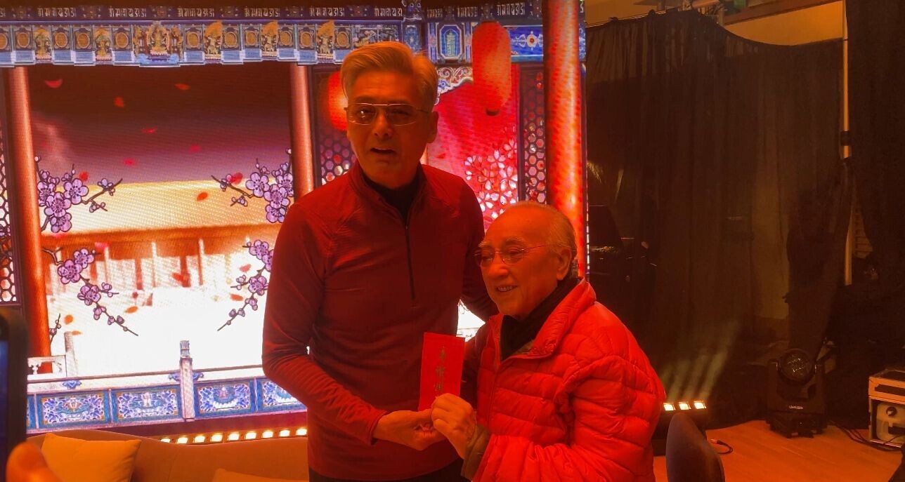 盧海鵬今晚開show,獲周潤發到文化中心探班派利是預祝順利。
