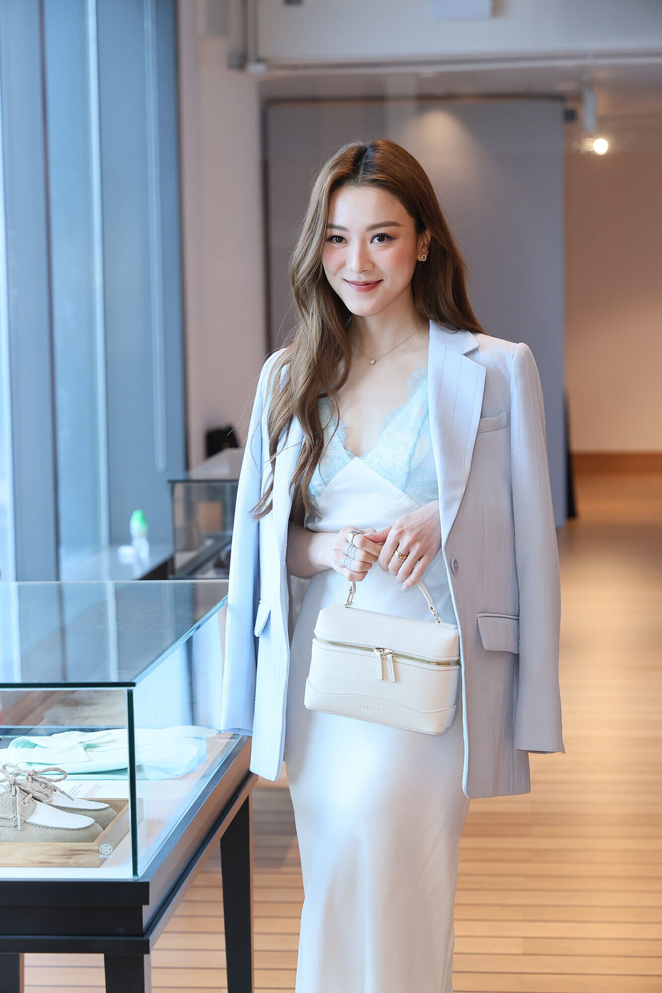 王敏奕盛裝現身中環,出席國際品牌SANDRO的最新時裝活動。身穿低胸裙的她,甫到場便吸引眾人目光,更急不及待投入欣賞品牌的SS26最新系列。她說:「其實自己本身都好鍾意呢個品牌,我一做fitting我已經好鍾意!自己鍾情於簡約優雅吊帶裙風格,認為今季系列中的淺藍色配白色組合,完美符合自己個人喜好。」
