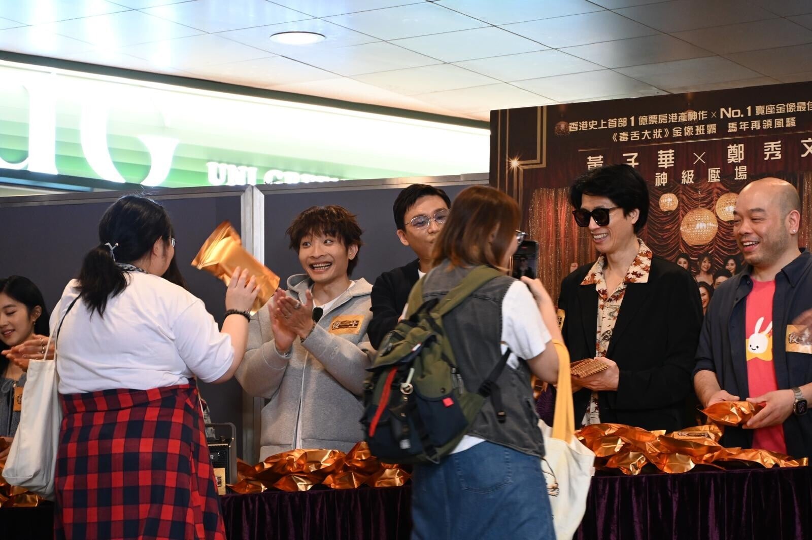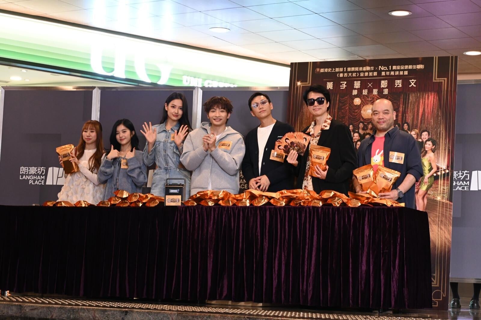黃子華率領《夜王》一眾演員到旺角大派利是。(娛樂組攝)