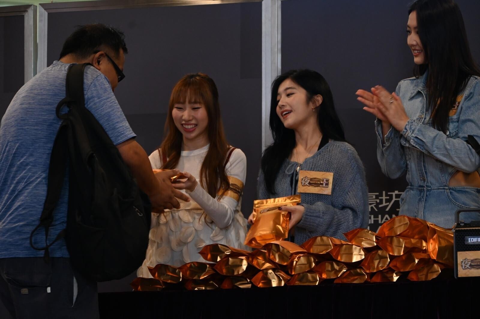 黃子華、廖子妤、何啟華、盧鎮業及導演吳偉倫等今日(16日)到旺角為賀歲片《夜王》宣傳,並向觀眾派笑口棗和利是。子華穿上花碌碌的恤衫以戲中「歡哥」造型示人,他指早前廖子妤、王丹妮、譚旻萱在情人節優先場以「歡哥」look現身謝票,令他決定要展示「正宗旺角歡哥」風采,更笑謂有齊18區不同衣服。對於《夜王》優先場票房接近200萬,破了導演吳煒倫上次《毒舌大狀》優先場票房紀錄,子華指不枉他們夜夜笙歌。