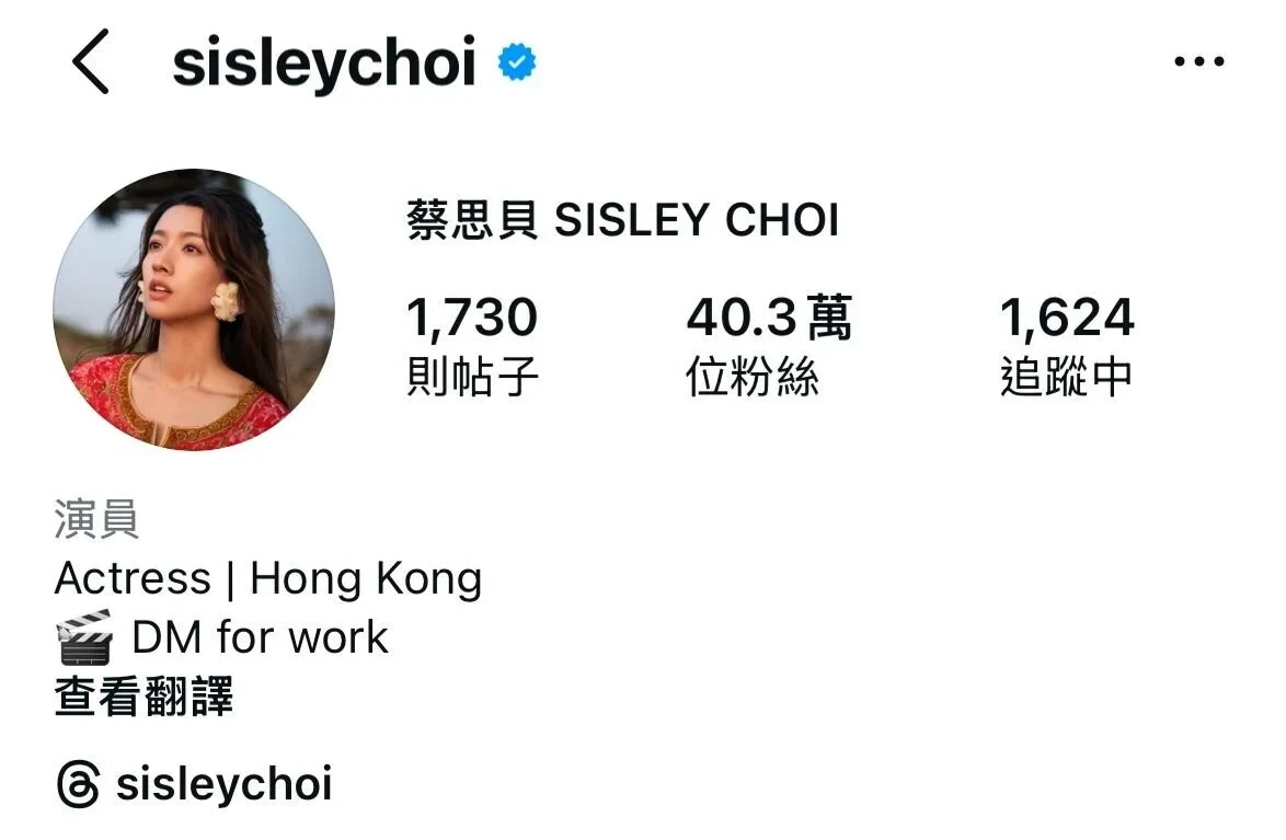 上星期有網民發現蔡思貝已經刪走在社交平台列出的TVB經理人聯絡電話,現已換上「DM for work inquiry(工作洽談請私訊)。
