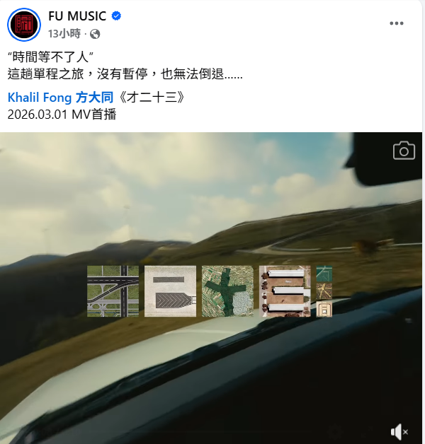 歌手方大同在2025年2月21日病逝,終年41歲。今天是方大同逝世1周年,賦音樂在官方Facebook帳號宣布,將於3月1日首播方大同於2024年發行歌曲《才二十三》的MV,並寫下:「時間等不了人。這趟單程之旅,沒有暫停,也無法倒退……」,短短10秒預告,已令粉絲們睇到落淚。