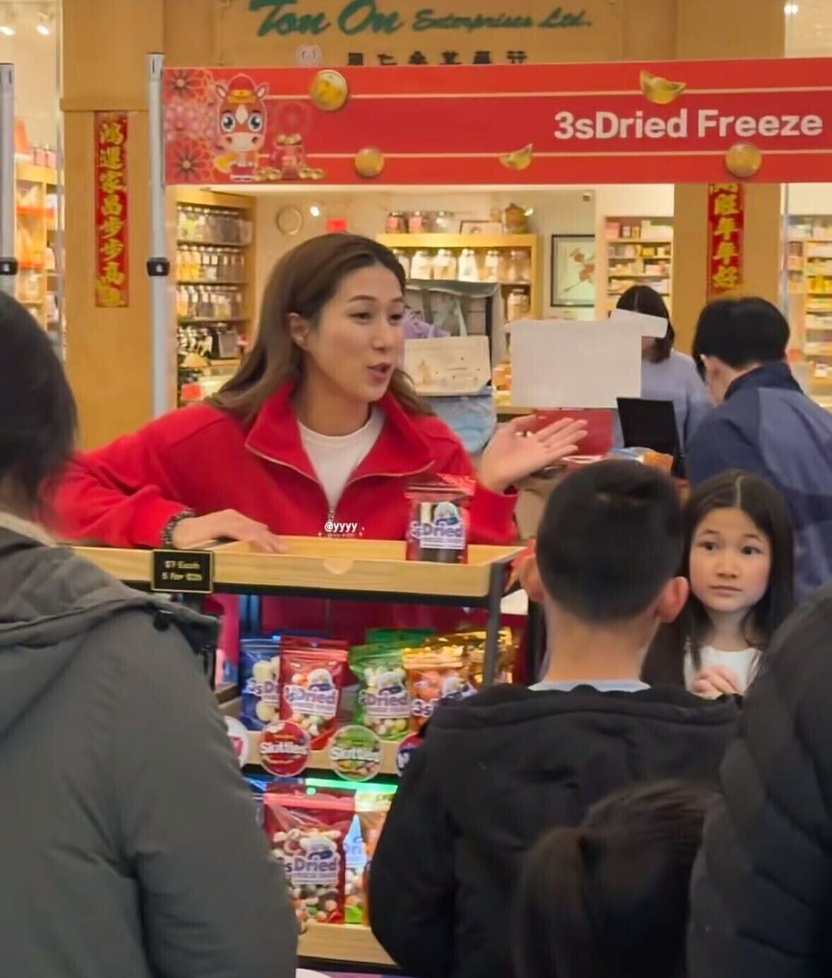 鍾嘉欣(Linda)自從嫁給脊醫老公Jeremy Leung後育有兩女一子,他們現時在定居加拿大生活。Linda即使忙於照顧子女外,亦有持續經營演藝事業,她近年忙於在內地開個人演唱會,早前她接受訪問表示有意在香港開演唱會,承諾報答樂迷繼續創作新歌。Linda上星期曾被巧遇與大女兒梁愛晨(Kelly)在加拿大某商場擺攤落力推銷糖果。最近有網民在小紅書分享巧遇Linda在當地單拖行一蚊店。