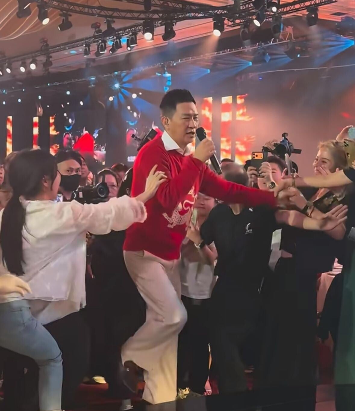 張家輝穿梭在觀眾席一邊唱歌一邊握手,現場觀眾歡呼尖叫,瞬間變粉絲見面會。
