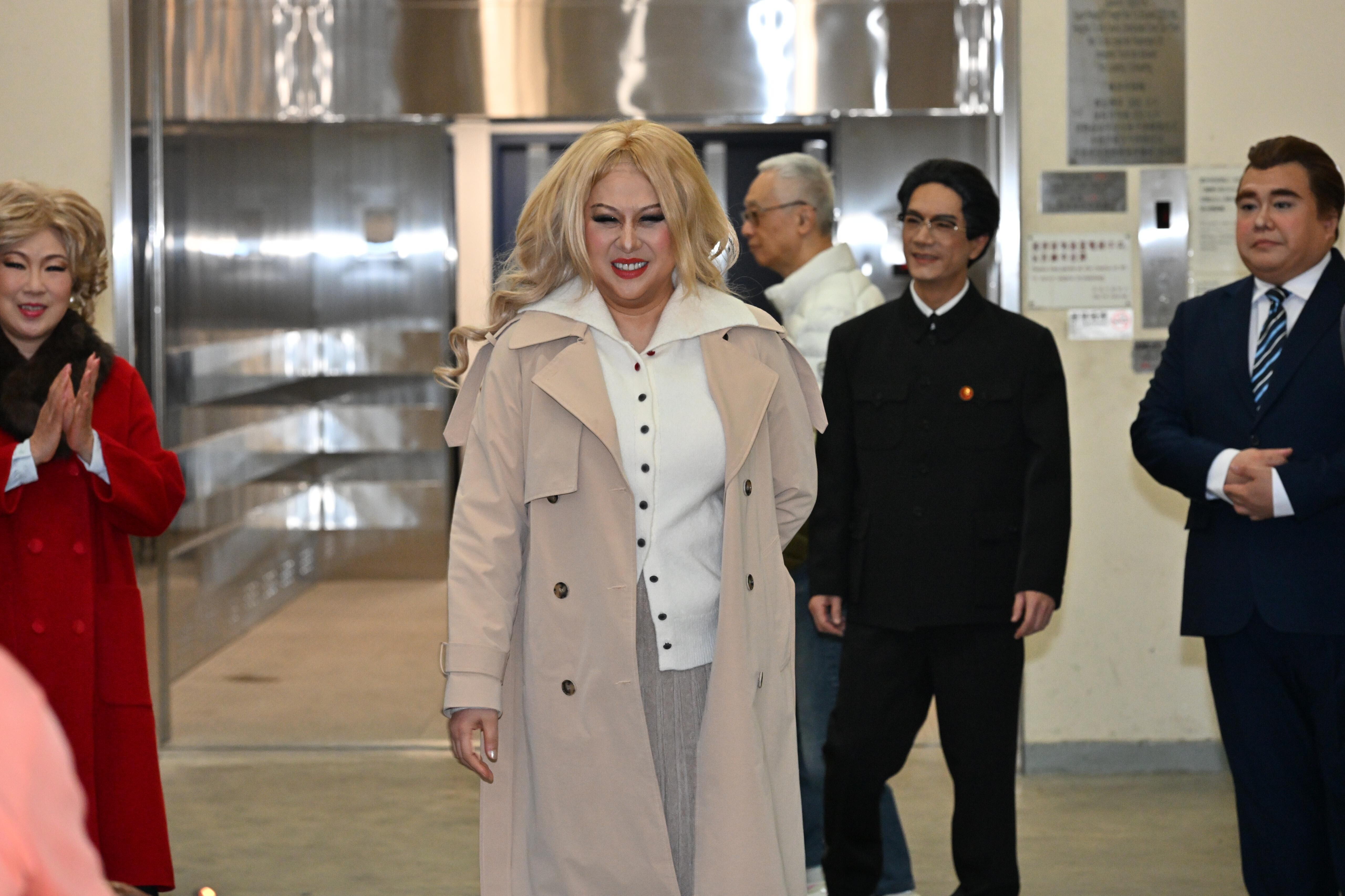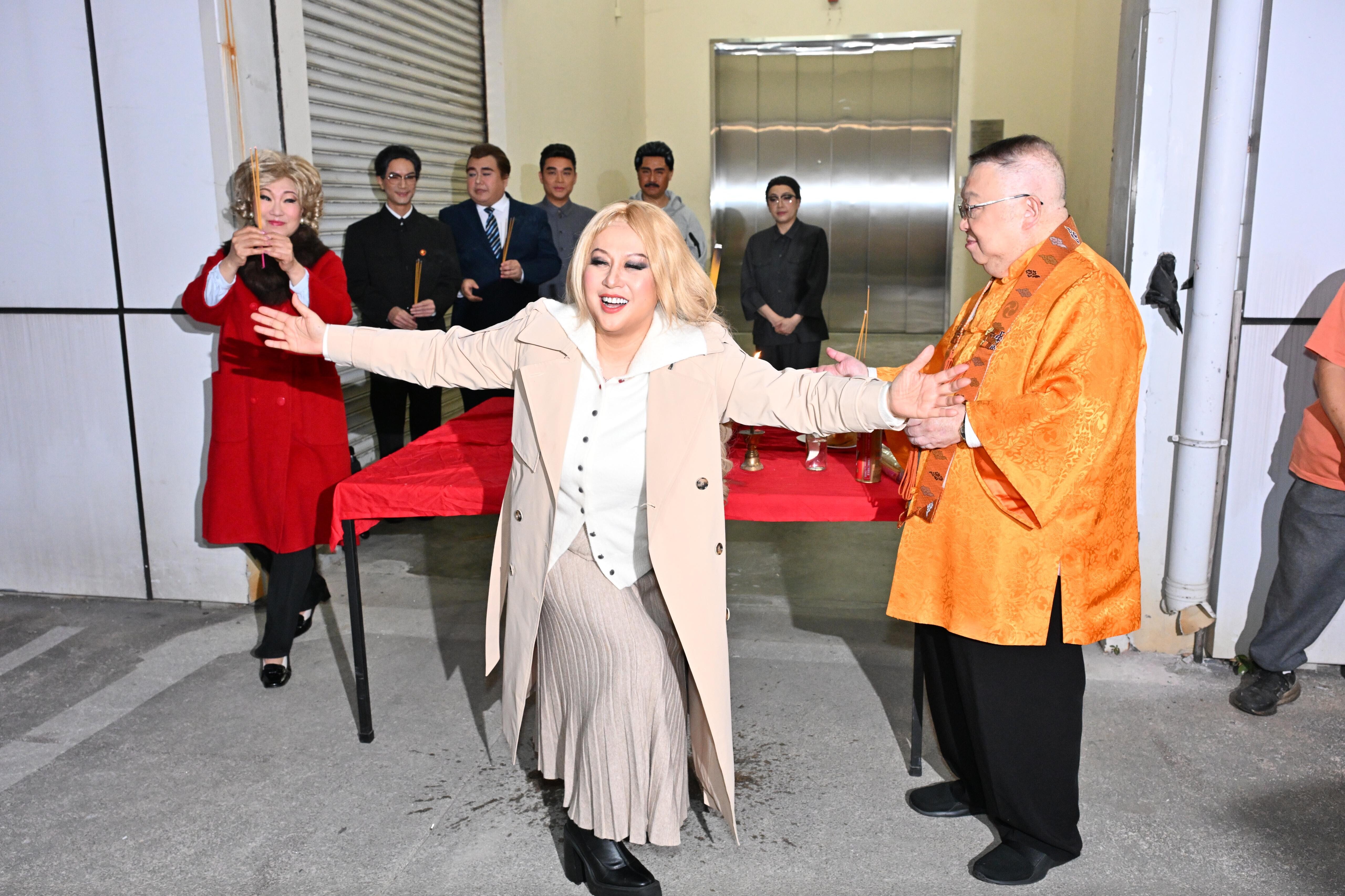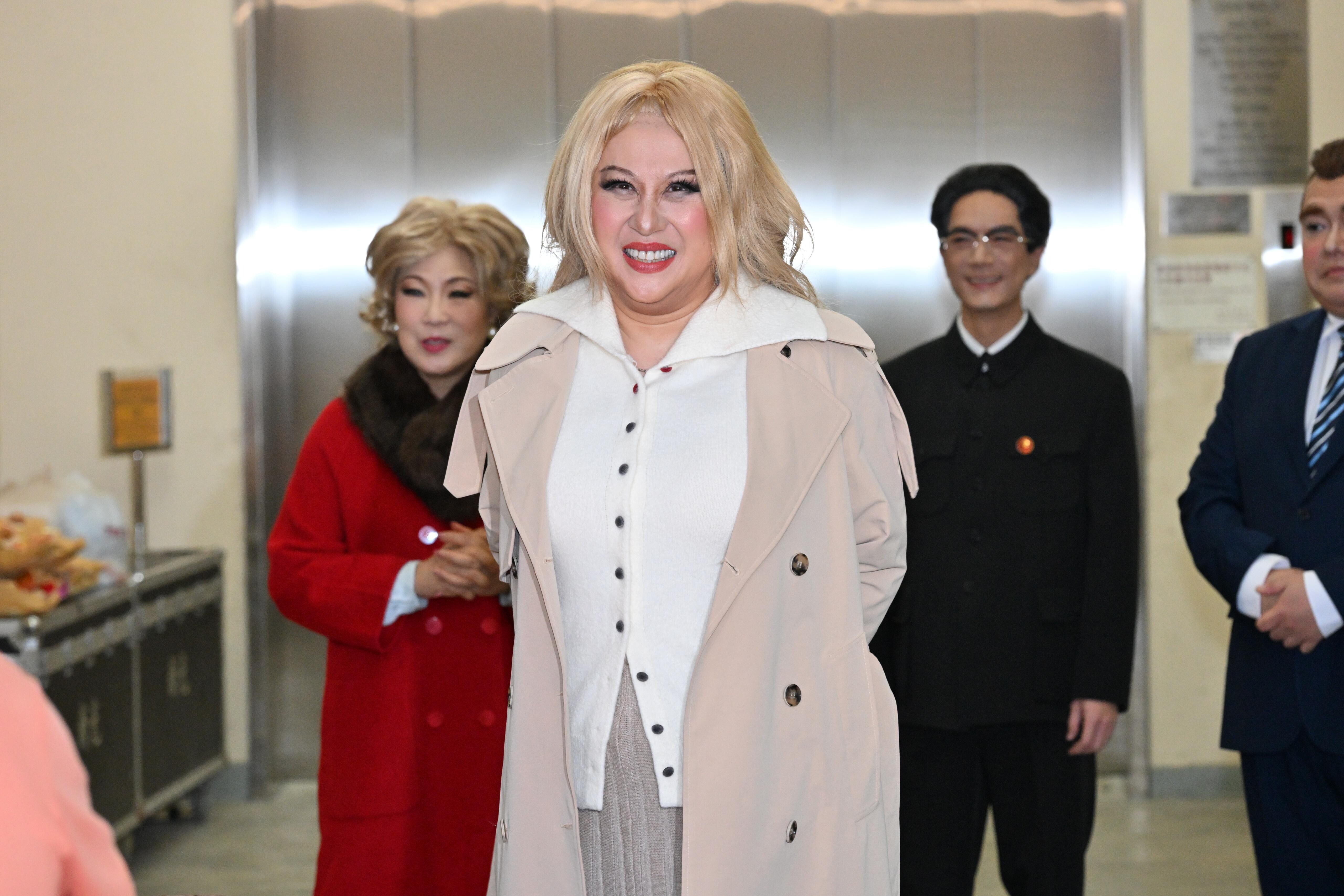李居明編寫的《粵劇特朗普4.0》昨日(22日)開鑼,他率領龍貫天、江欣燕及多位大佬倌拜神祈求演出順利。江欣燕在戲中一人分飾兩角,分別是特朗普囡囡「伊萬卡」及日本首相「街市早苗」。她為了戲劇效果更裝大胸,更不時掀開外套展示「隆胸」成果,非常搞笑。