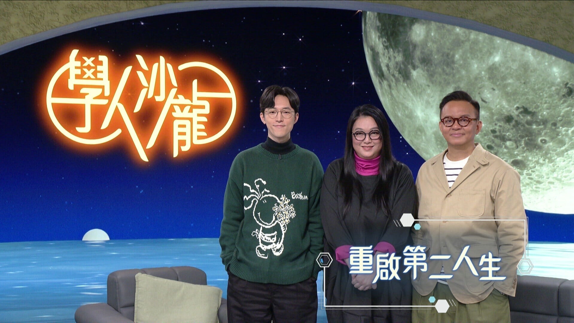 李珊珊與《學人沙龍》主持咪哈 (左一) 和黃仲遠 (右一) 暢談如何重啟第二人生。