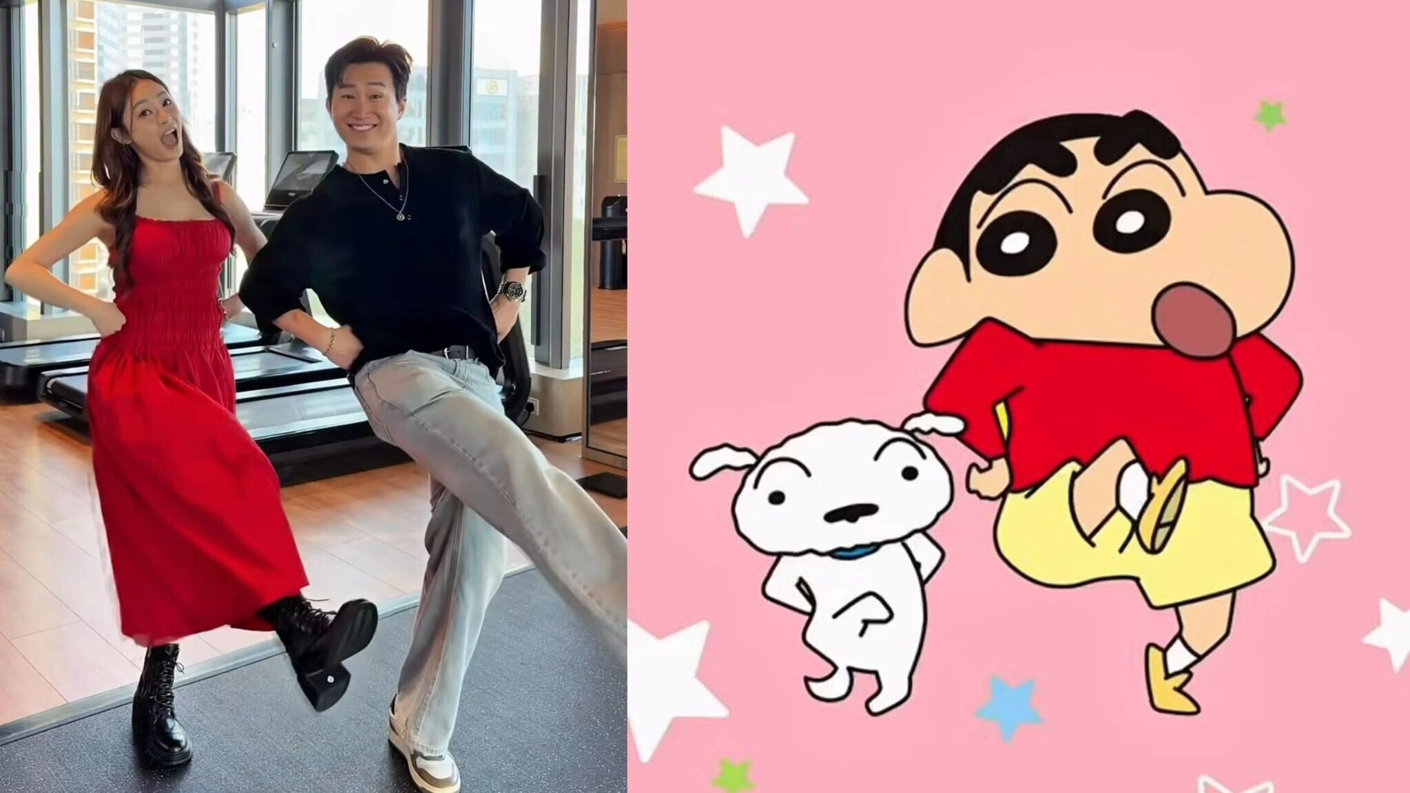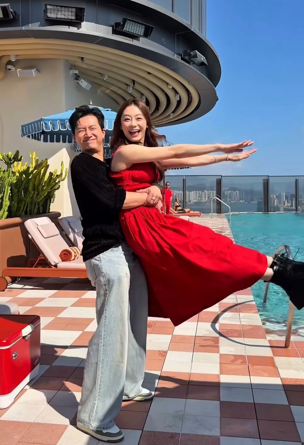 GM和Sophie發文寫上:「祝大家生日快樂。#人日 #生日快樂#情侶日常 #小新小白。」從這一輯甜蜜靚相可見GM和Sophie完美還原小新小白經典Pose,動作一致非常登對,不過Sophie似乎幸福肥,當GM用盡全力抱起對方時表情顯得有點吃力。