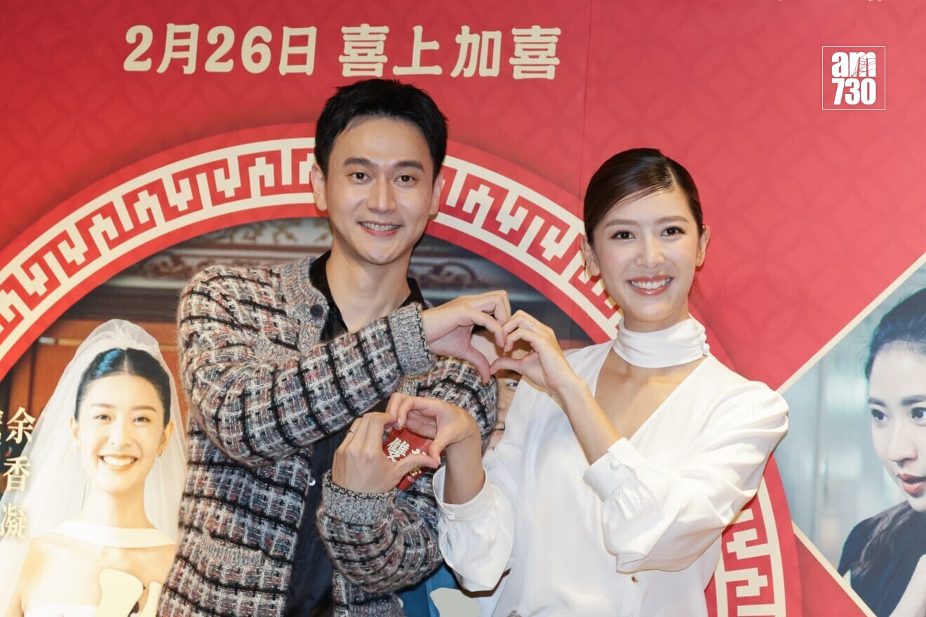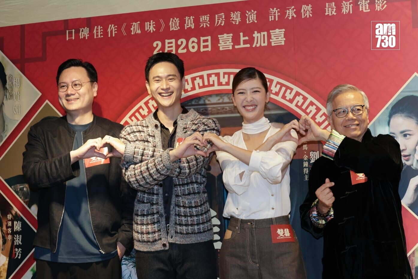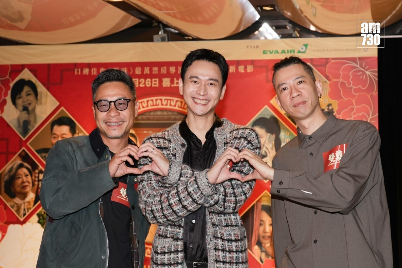 台灣賀歲喜劇《雙囍》今日(24日)於香港舉行首映禮,3位主角余香凝、劉冠廷和田啟文,聯同導演許承傑、監製苗華川和張林翰齊齊現身。劉冠廷與余香凝在戲中合演新婚夫妻,他大讚新娘子漂亮,笑言當得知田啟文演外父時,懷疑余香凝是領養的女兒,田啟文(田雞)聞言即反駁,「通常女兒似爸爸!所以可讓我老婆放心,雖然我們不打算生,但妳睇,生出來的女兒不止漂亮,更是影后,生得過呀!」余香凝亦大表認同:「個樣似爸爸,但身高可能似媽咪,田生都好靚仔。」