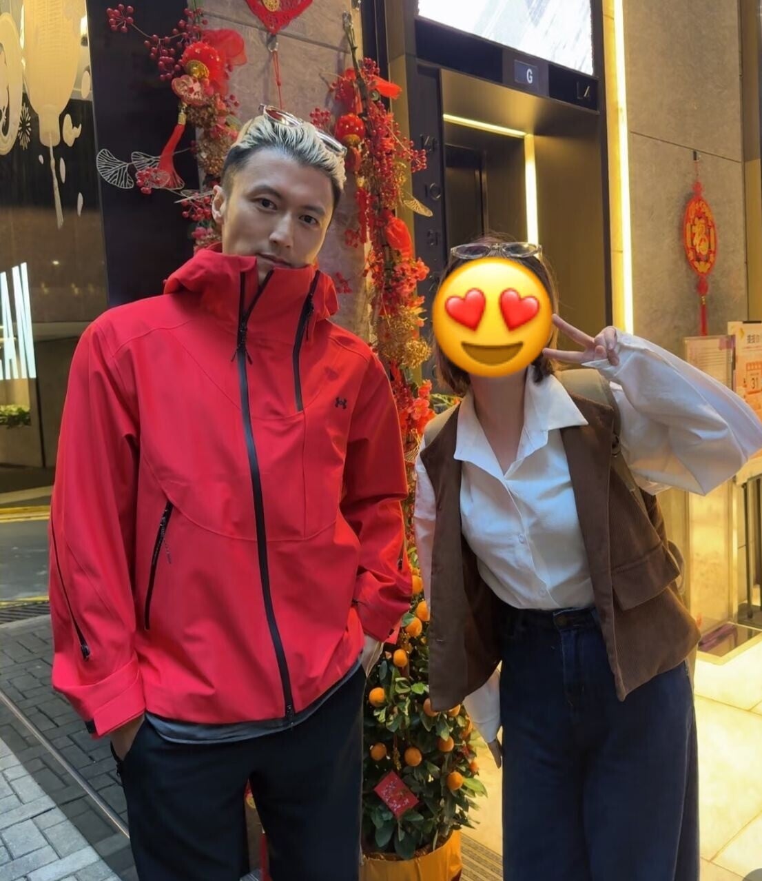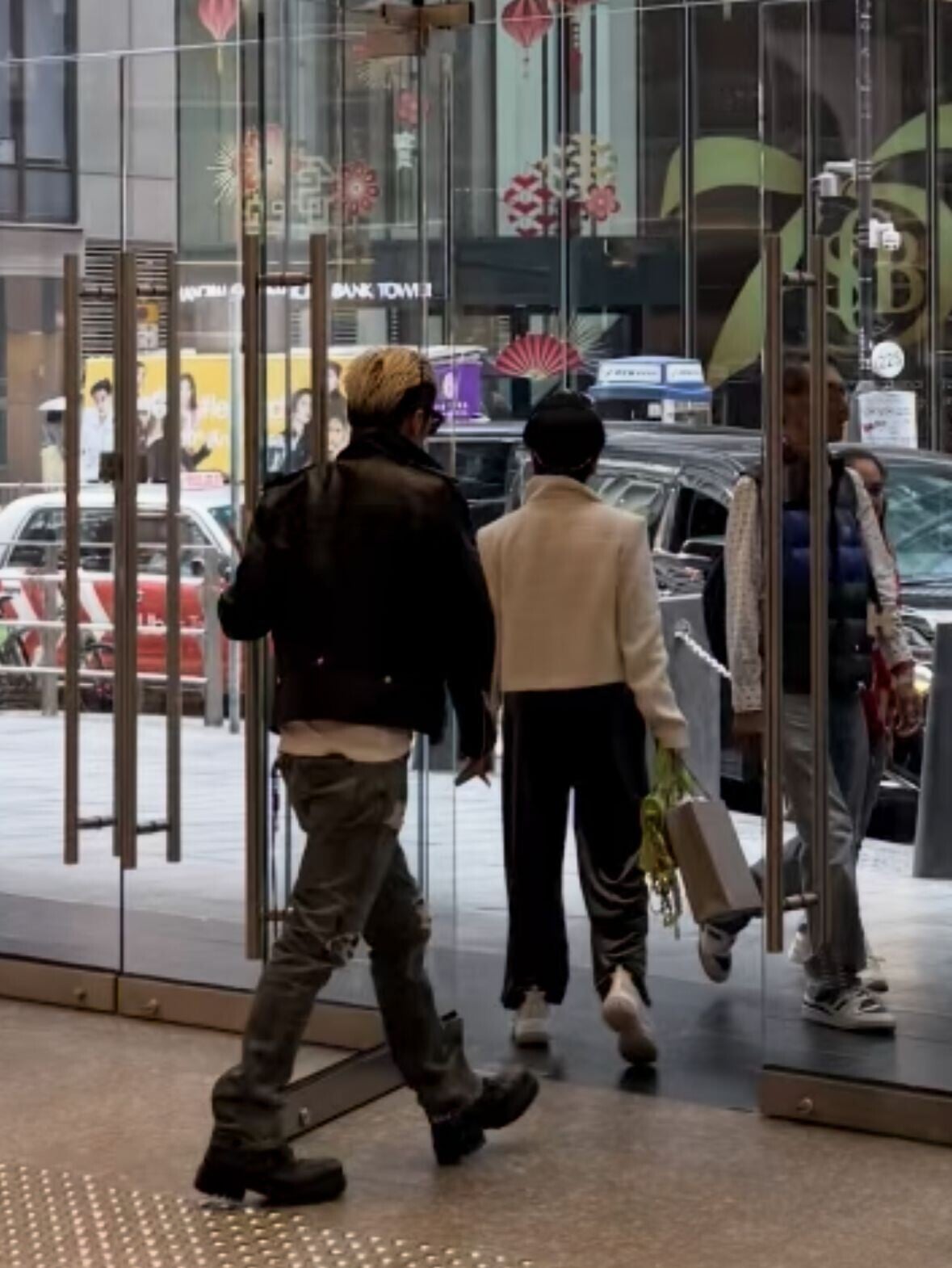 期間進出商場入口時謝霆鋒主動為拉姑開門,非常貼心!