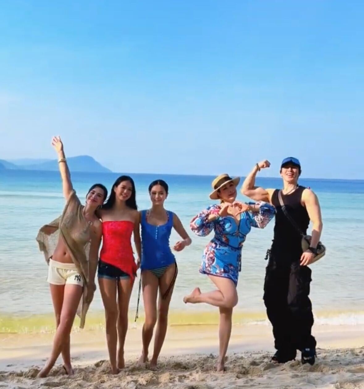 現年55歲鍾麗緹(Christy)最近在過年期間與老公張倫碩和三位寶貝女一起去旅行度假。Christy在社交平台分享了一條影片記錄旅行的點滴,畫面中一開始他們一行五人互相牽着手身處室內的環境,之後他們一轉身,鏡頭就瞬間移到了沙灘的場景, Christy與三位寶貝女換上泳裝大騷身材。