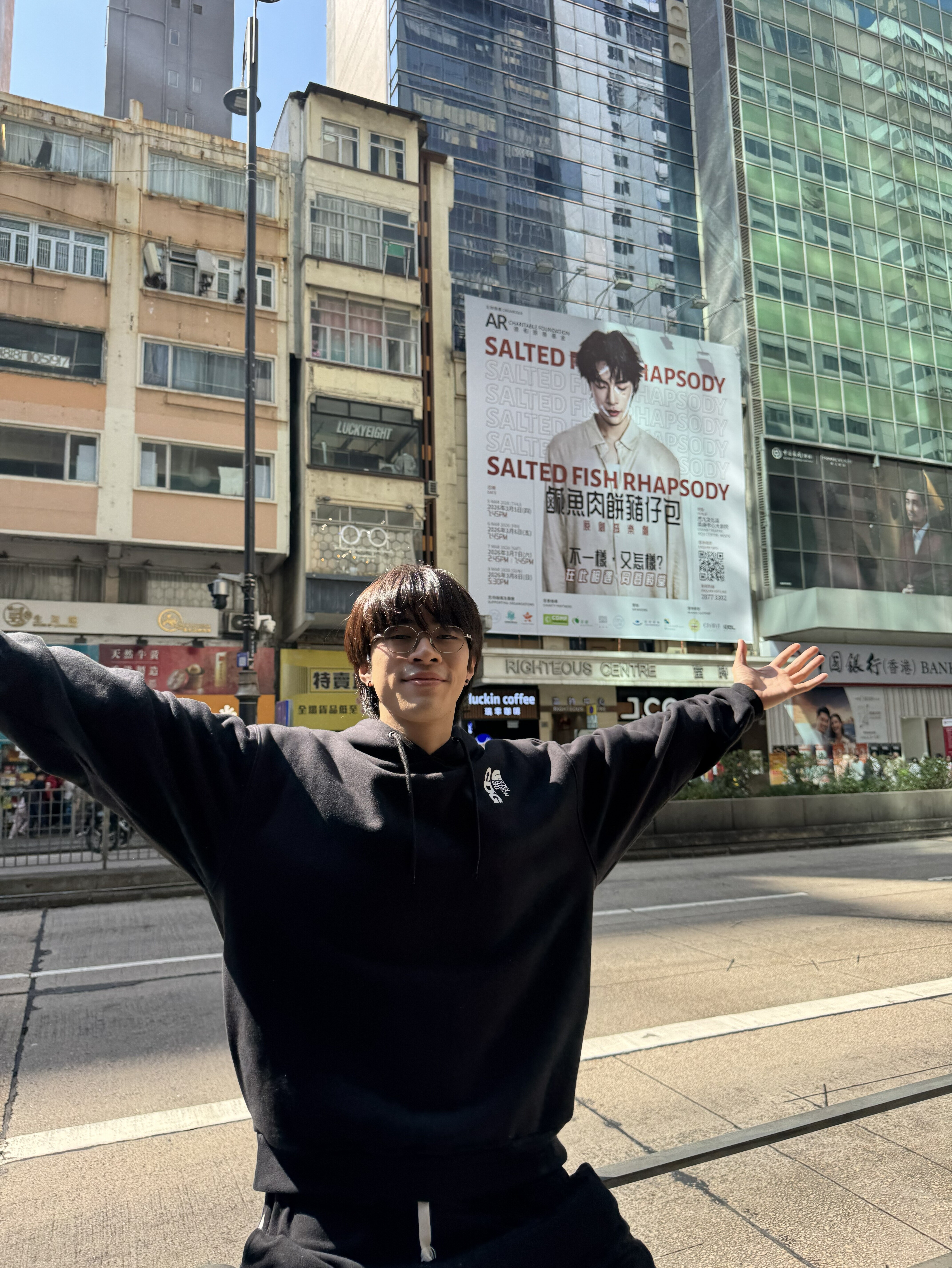 Kakit更沒有想過自己的大頭宣傳海報會登陸在旺角鬧市,他亦忍不住到旺角打卡記錄。他說︰「試幻想一瞓醒見到自己個樣喺彌敦道係啦,人生呢啲嘢,點估到啫。第一次男主角,壓力點會冇,舞台劇都係做過3次,但請放心,5年前同自己講要再努力多200%,今次會俾多300%,問你死未。導演話今次個Show完全地為我而設,想睇下我22年嚟學到啲咩,記住多多支持。不過飛就一早冇晒了,精神上支持我吧。望愛充斥全宇宙,新年快樂身體健康。35號西九戲曲中心大劇院 劇場見。」