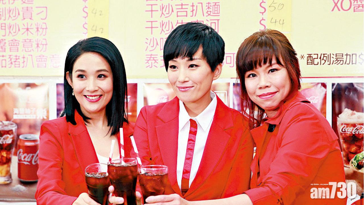 (左起)陳逸寧、谷祖琳及林兆霞齊為可口可樂拍宣傳片。