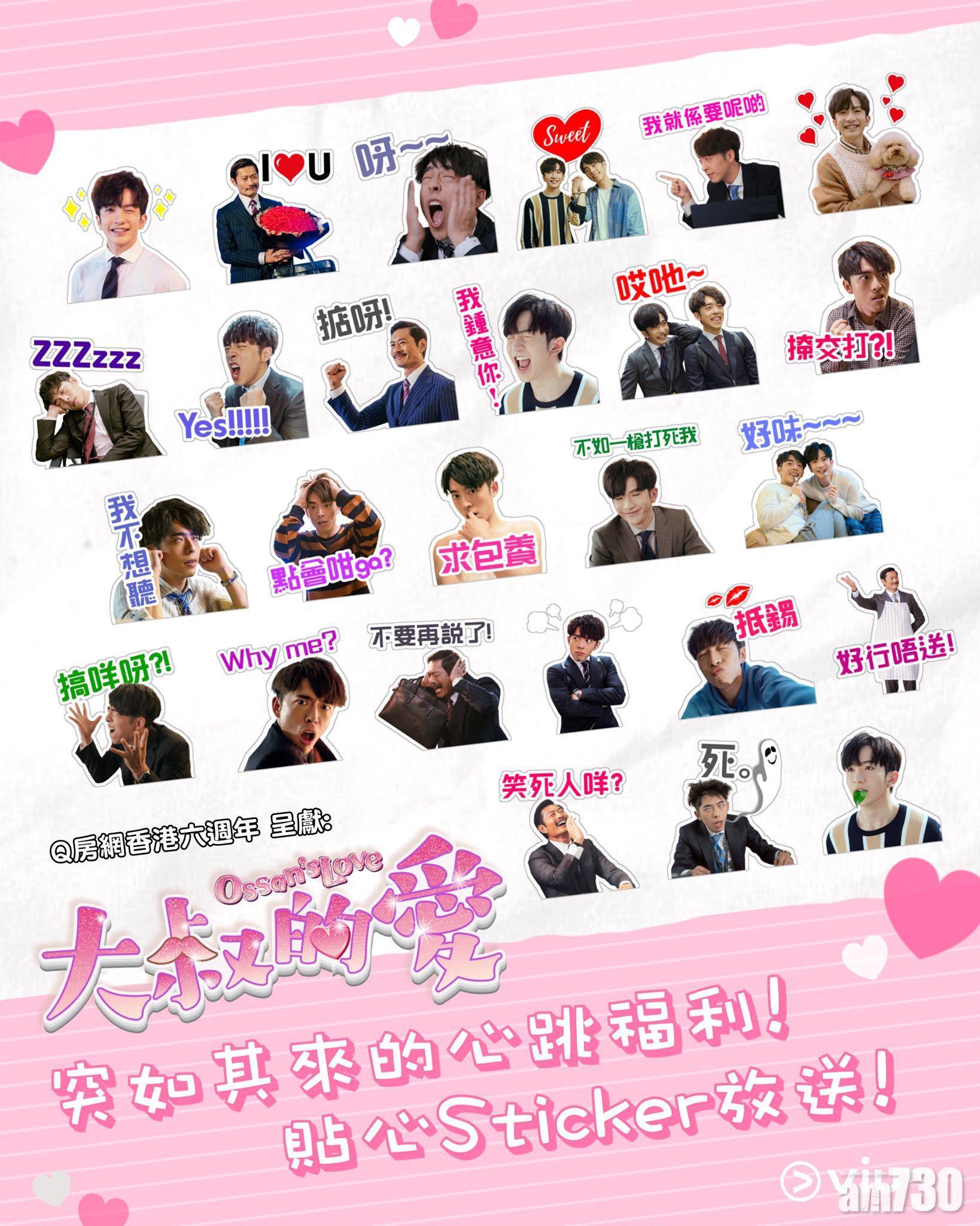 由黃德斌、Edan(呂爵安)、Anson Lo(盧瀚霆)等主演的《大叔的愛》掀起熱潮,有網民自製WhatsApp及Singal sticker,隨即吸引大批粉絲下載。ViuTV的官方facebook今日宣布推出《大叔的愛》表情包︰「呢個系列可以一次過擁有晒阿田、阿牧同KK嘅福利Stickers,陣間就可以瘋狂用KK示愛啦!」