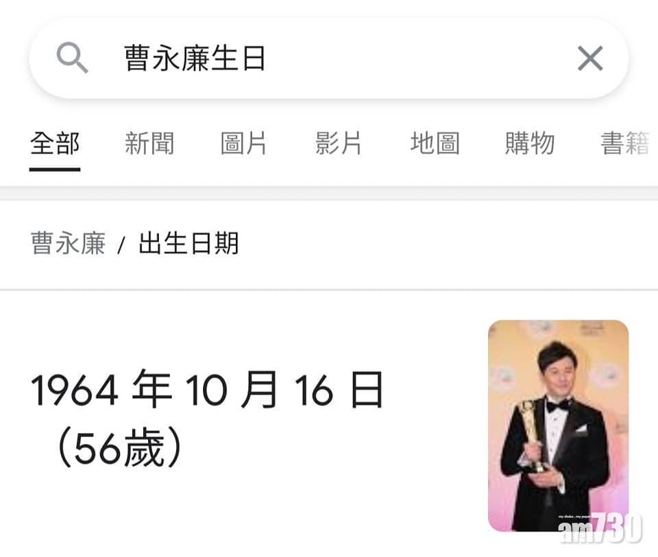 隨住「教主誕」過去,相信「前夫」可以稍為鬆一口氣。昨日另一話題放在視帝王浩信身上,原來他與Anson Lo同月同日生,但王浩信則大Anson Lo十二年。其後有網民發現MIRROR令一成員Anson Kong與曹永廉也是同月同日生,前者於1992年10月16日出世,而曹永廉則於1964年出世,二人相差28年,曹永廉絕對可以生得出Anson Kong。