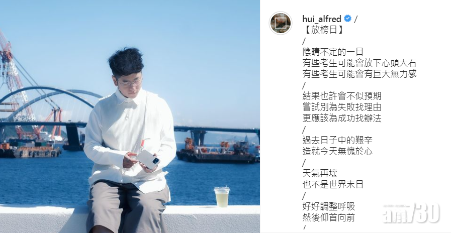 Alfred勉勵考生,「天氣再壞,也不是世界末日;好好調整呼吸,然後仰首向前。」