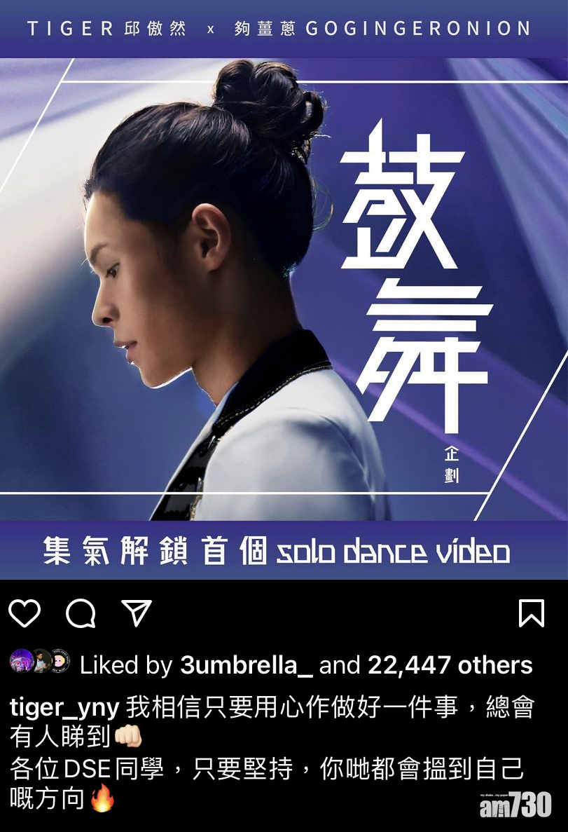 Tiger留言:「我相信只要用心作做好一件事,總會有人睇到,各位DSE同學,只要堅持,你哋都會搵到自己嘅方向。」