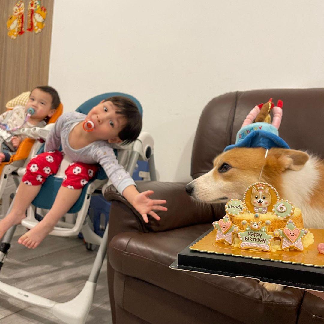 雯雯於晚上在IG分享與愛犬慶祝的生日,照片見到她為愛犬準備了一個蛋糕,而一對寶貝仔則坐在BB椅上,大仔更伸手欲觸摸愛犬,並對住鏡頭做出趣怪表情。雖然相中未見到張致恒,但其中一張愛犬照片中出現一名手毛濃密的前臂,對比過往的照片,相信是張致恒的手。