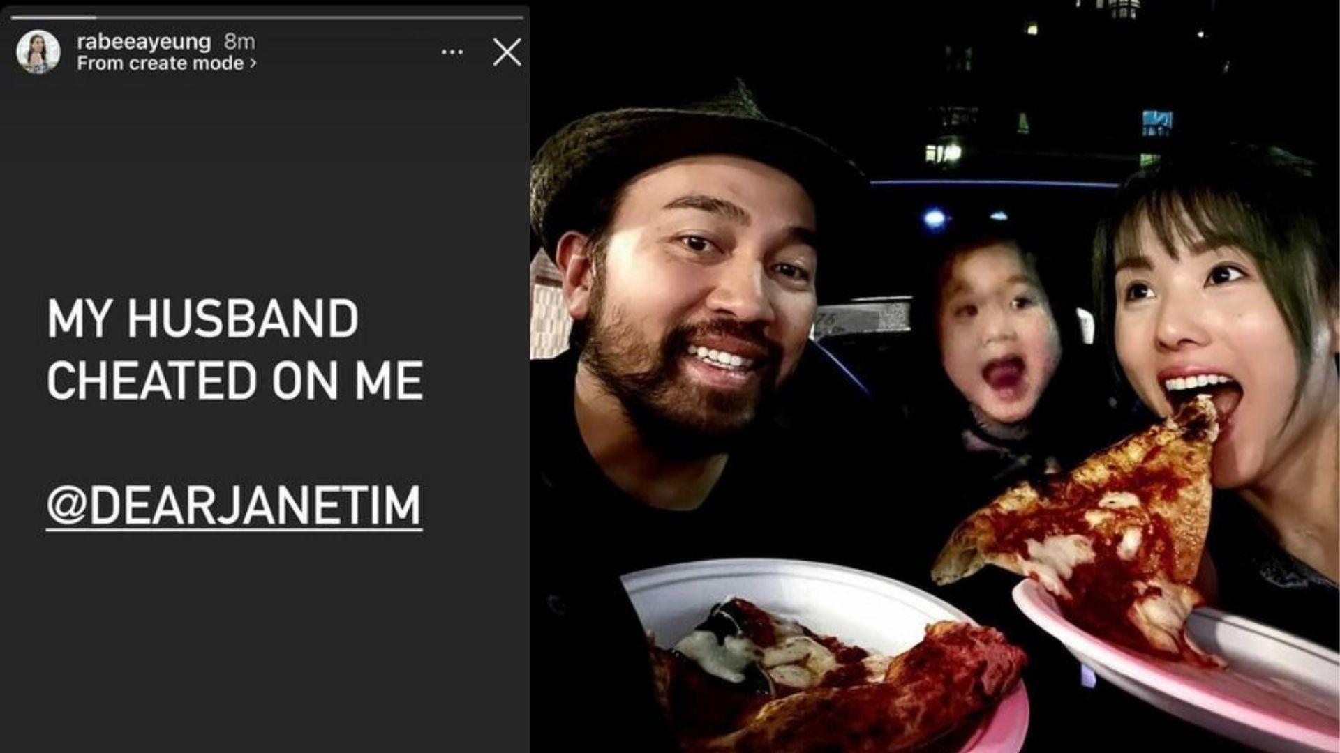 樂隊Dear Jane主音Tim(黃天翱)與前港姐楊洛婷於2014年結婚,多年來兩公婆出名恩愛,點知楊洛婷於凌晨時份在IG限時動態以黑底白字寫:「My husband cheated on me」,更tagTim,疑似自揭老公不忠,不過網民發現公開後十多分鐘,楊洛婷隨即把Story刪走,令事件變得撲朔迷離。