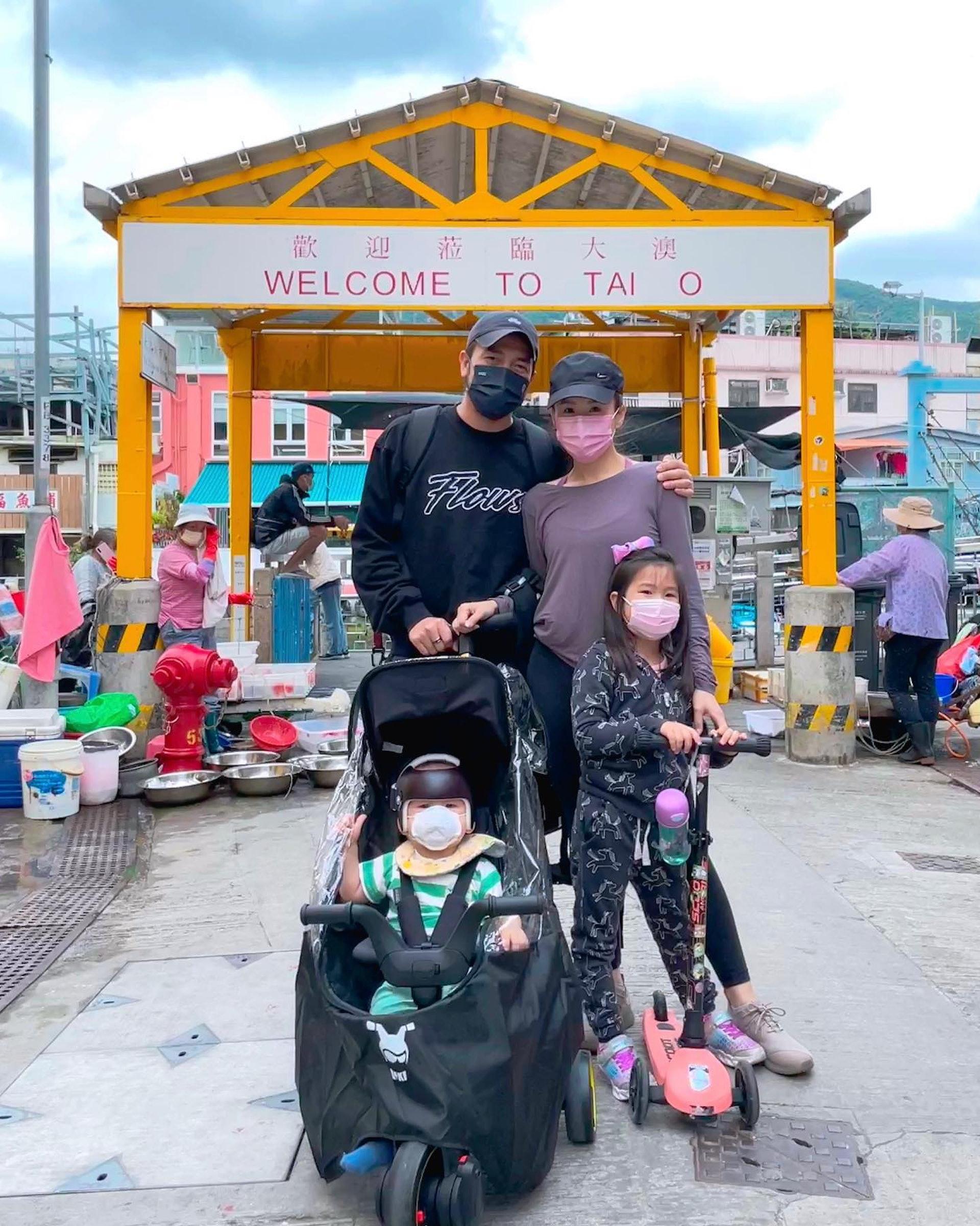 楊洛婷大晒一家四口遊大澳的照片。