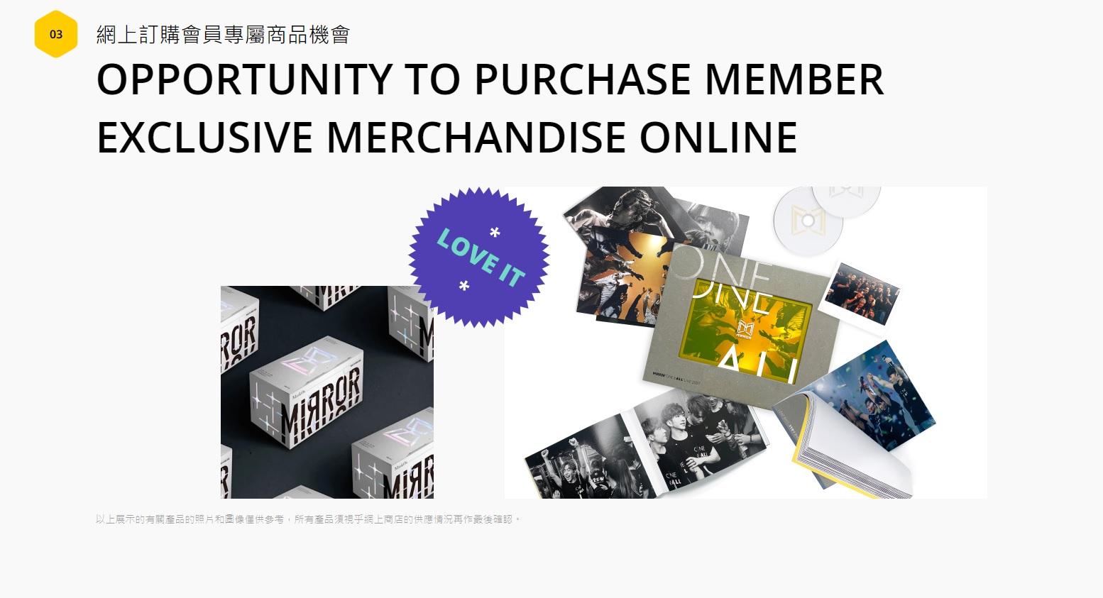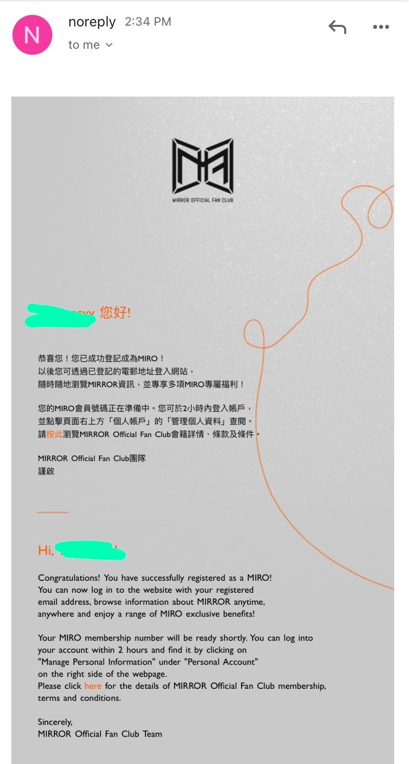 MIRROR官方歌迷會將於本月面世,惟一直未有確實日期。及至今日,網上瘋傳MIRROR官方歌迷會的網站,入面除了有大大張MIRROR照片外,還寫有「MIRROR官方歌迷會」,「BE OUR MIRO」,「立即成為MIRO」的字眼。網站提到成為MIRO會員可獲迎新禮物,包括有會員證、專屬會徽襟章、精美立體拼圖擺設、一套12張珍藏版明信片及紀念海報,同時可獲得訂購MIRROR演唱會門票機會、見會面門票機會等等。